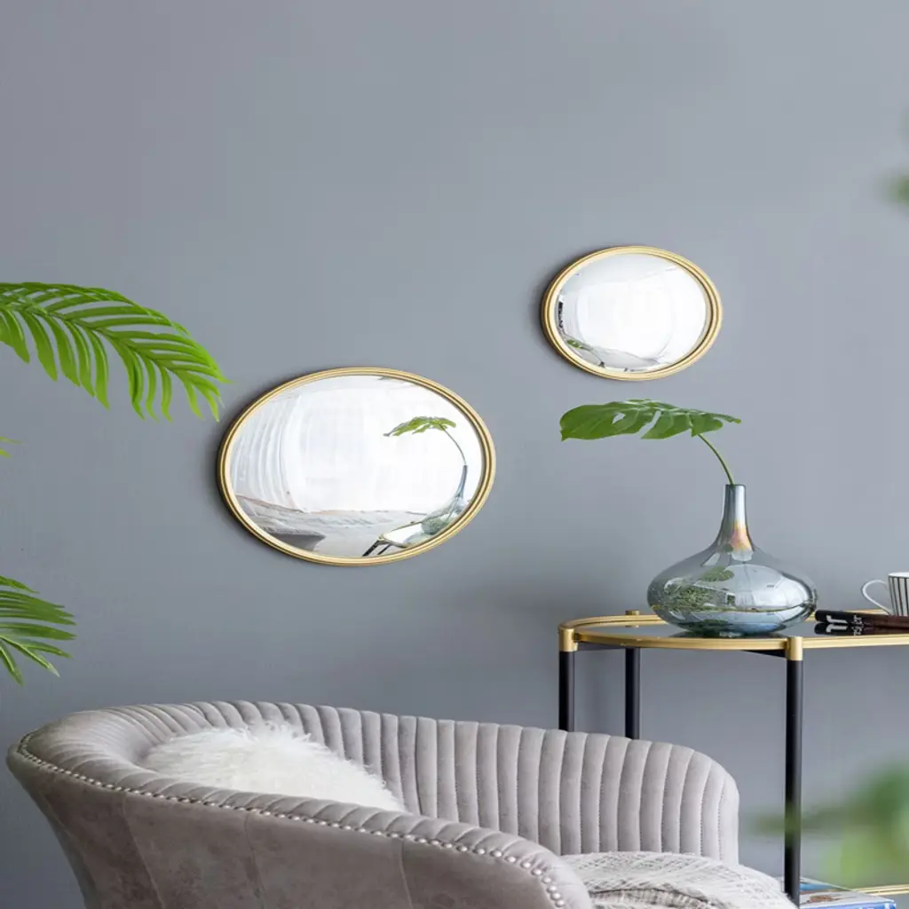 SEVOBAL Bathroom Vanity Mirrors Elegant Gold Round Convex Wall Mirror Smooth Surface Robust and Safe No-Fog Surface SEVOBAL brings you a beautiful gold-rimmed convex mirror that elevates any space with its luxurious appeal. Its unique convex design enhances the reflection and adds depth to your room, while the sturdy frame ensures lasting durability. A perfect blend of style and functionality, this mirror is ideal for enhancing your bathroom, bedroom, or living area.