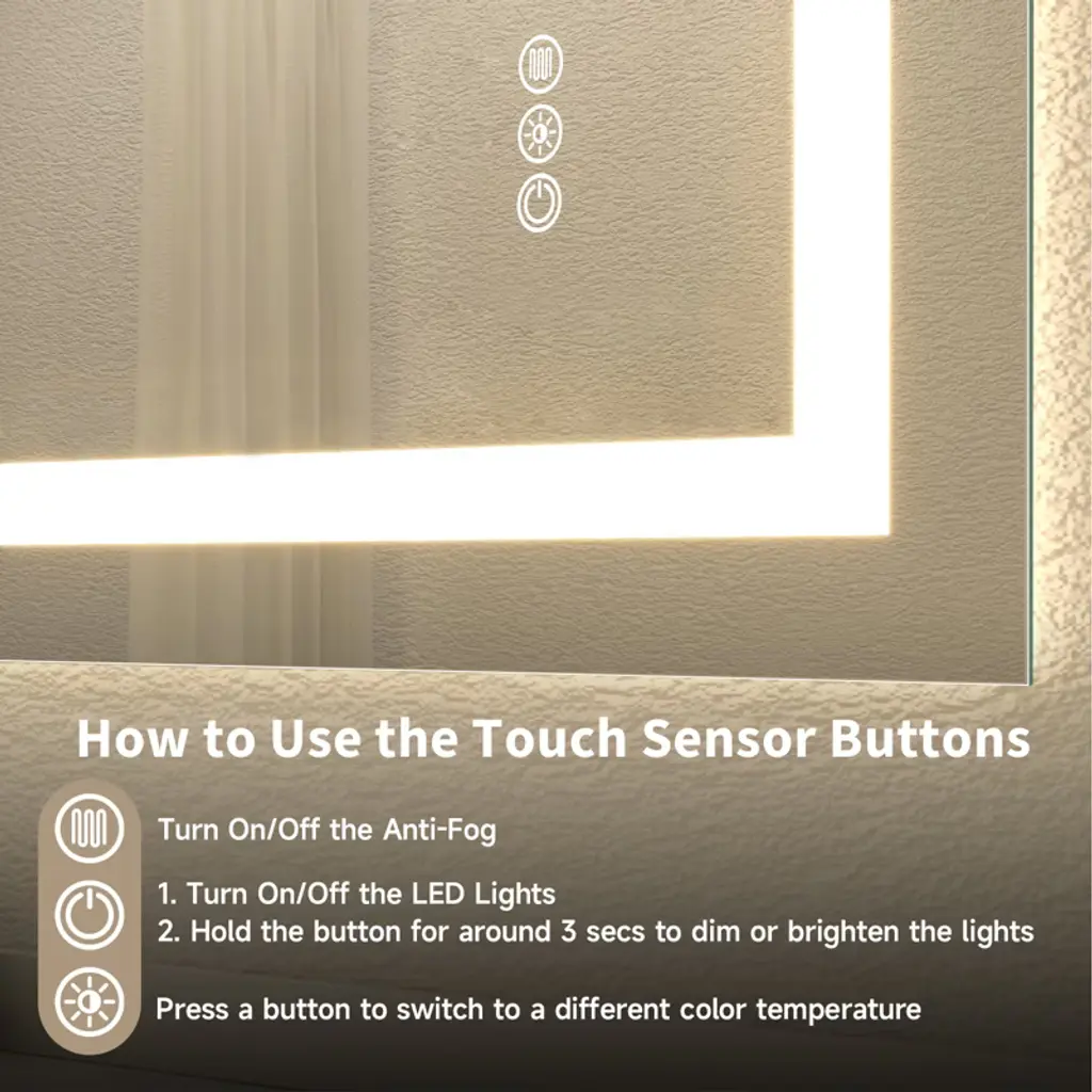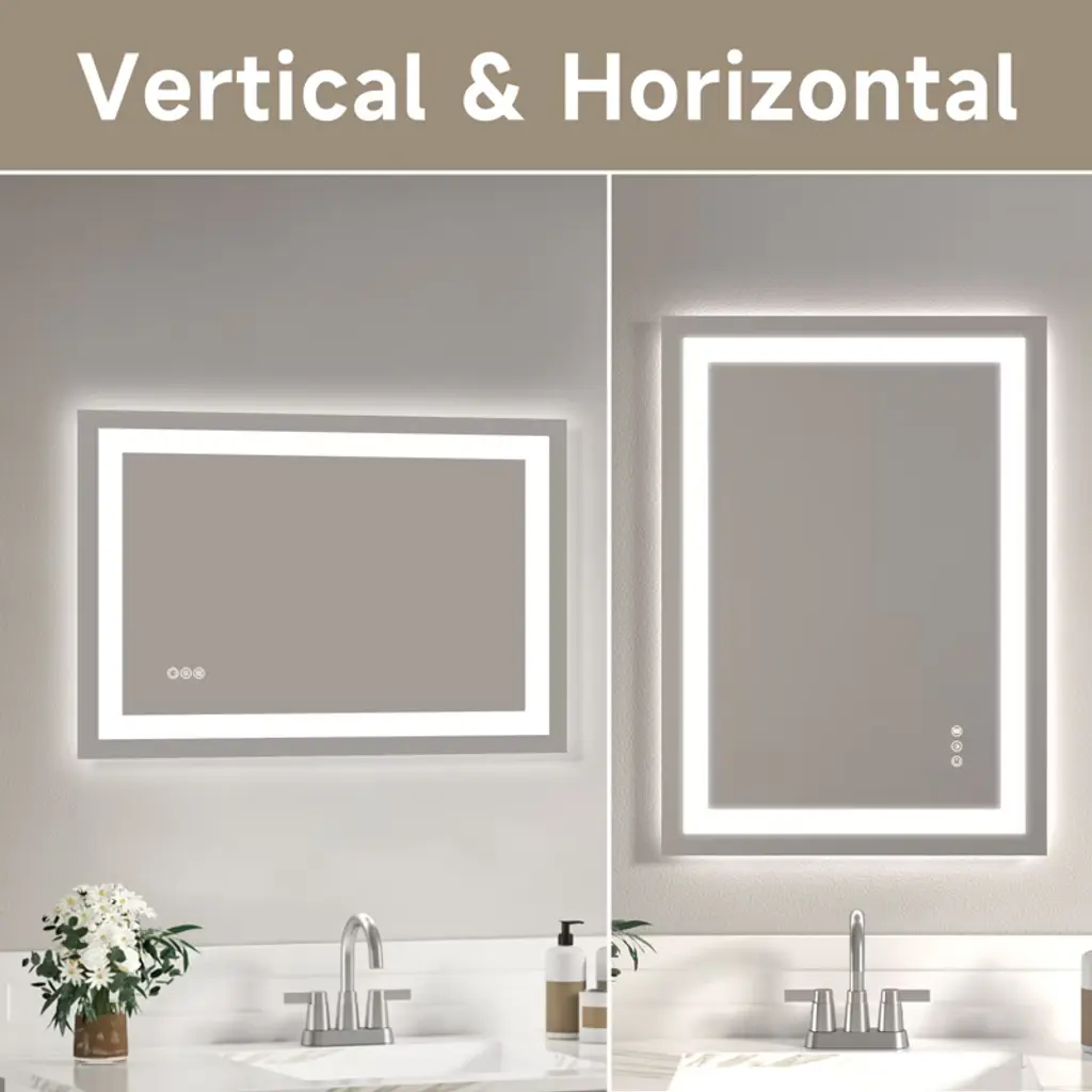 SEVOBAL Bathroom Vanity Mirrors offer a sleek frameless design that brightens your space and enhances daily grooming with a clear high-resolution reflection. Crafted from durable tempered glass this mirror provides a stylish and long-lasting addition to any bathroom. Its versatile features include smooth brightness control and anti-fog functionality ensuring a crisp and reliable view every day for makeup shaving or general use.