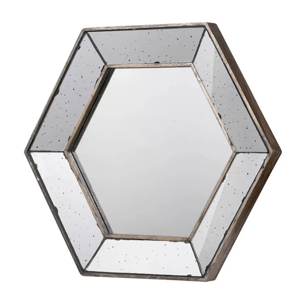 Sevobal Bathroom Vanity Mirrors Hexagon Wall Mirror With Silver Finish Shatterproof Safety Durable Construction, Silver, 21.4"*1.4"*18.6"