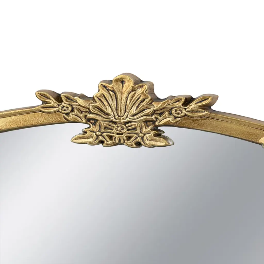 Sevobal Bathroom Vanity Mirrors Shatter Proof Round Leaf Crest Reflective Accent Durable Construction Effortless Assembly Anti Fog, Gold, 30"*1"*31"