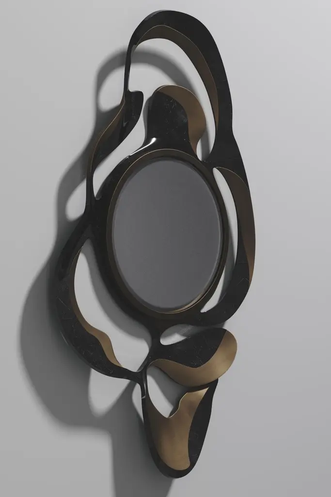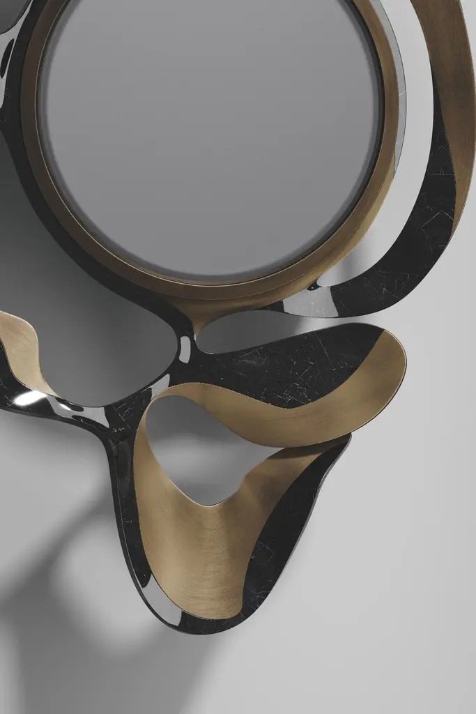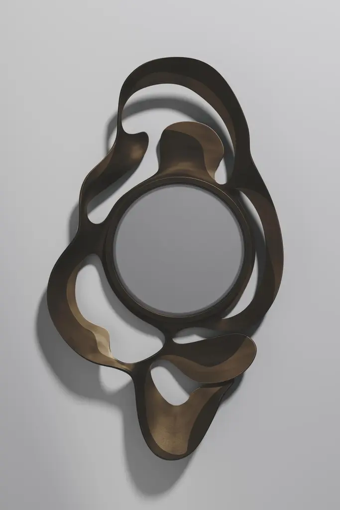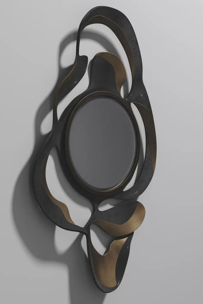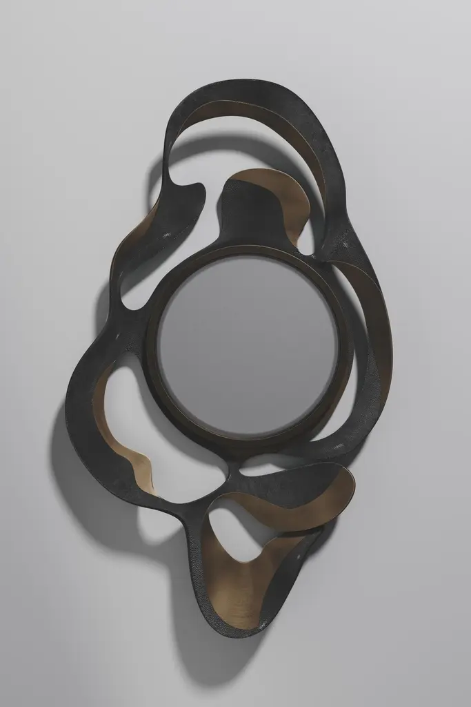 The Paris based label has distinguished themselves since their launch, with their iconic use of shagreen mixed with brass and other exotic materials. All furniture is handcrafted by skilled artisans, ultimately making each piece unique, designed in Paris and produced in the Philippines.The Leaf Mirror by Kifu Paris is a dramatic and organic piece. The cream shagreen and bronze-patina bass inlay mixture creates a striking appearance as it emulates a whimsical interpretation of intertwining branches. This piece is designed by Kifu Augousti the daughter of Ria and Yiouri Augousti. Available in other finishes The finish of the shagreen is authentic as it is hand-dyed and the designer calls the finish look: "antique natural shagreen"The dimensions of this piece are 69.0 x 115.0 x 8.2 cmAll Kifu Paris pieces are handmade by artisans, ultimately making each piece unique.Custom color/sizing available on request.Wipe clean with soft dry cloth.Although inspired by her parents, her collection of Home Accessories and Furniture is a distinct identity of its own. Kifu uses handmade techniques of elaborate inlay patterns of shagreen, shells, semi-precious stones, materials she experienced as a child growing up in her parent’s studio, but interpreted in a younger quirkier way reflecting her youth. From her "jewelry inspired knobs" on decorative boxes, gold bar boxes and an extravagant inlay pattern mix of shagreen and shell inspired by galactic constellations, as seen on her enormous round mirror, is refreshing to see. Kifu embodies whimsical elements throughout her collection and is not afraid to be daring and unexpected in her approach to design.All shagreen-covered items should be kept out of direct sunlight, color variants may occur on the stingray and other exotic finishes, but this showcases the Parisian label's commitment to creating authentic luxurious products using natural components.