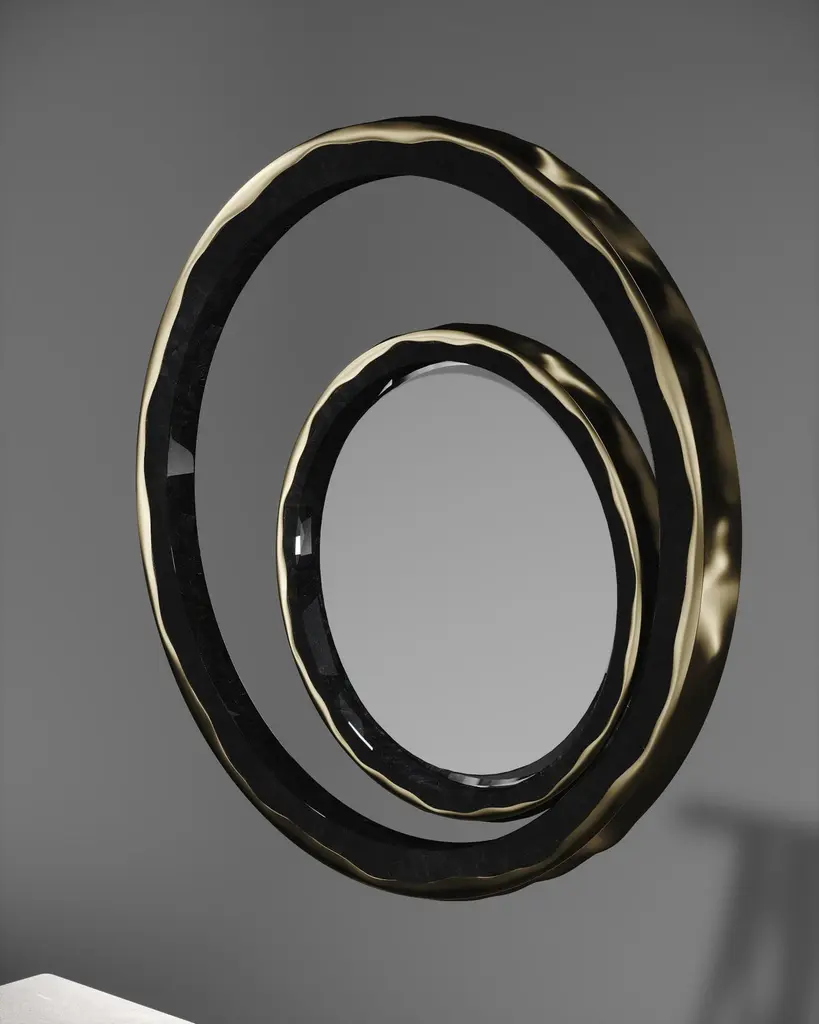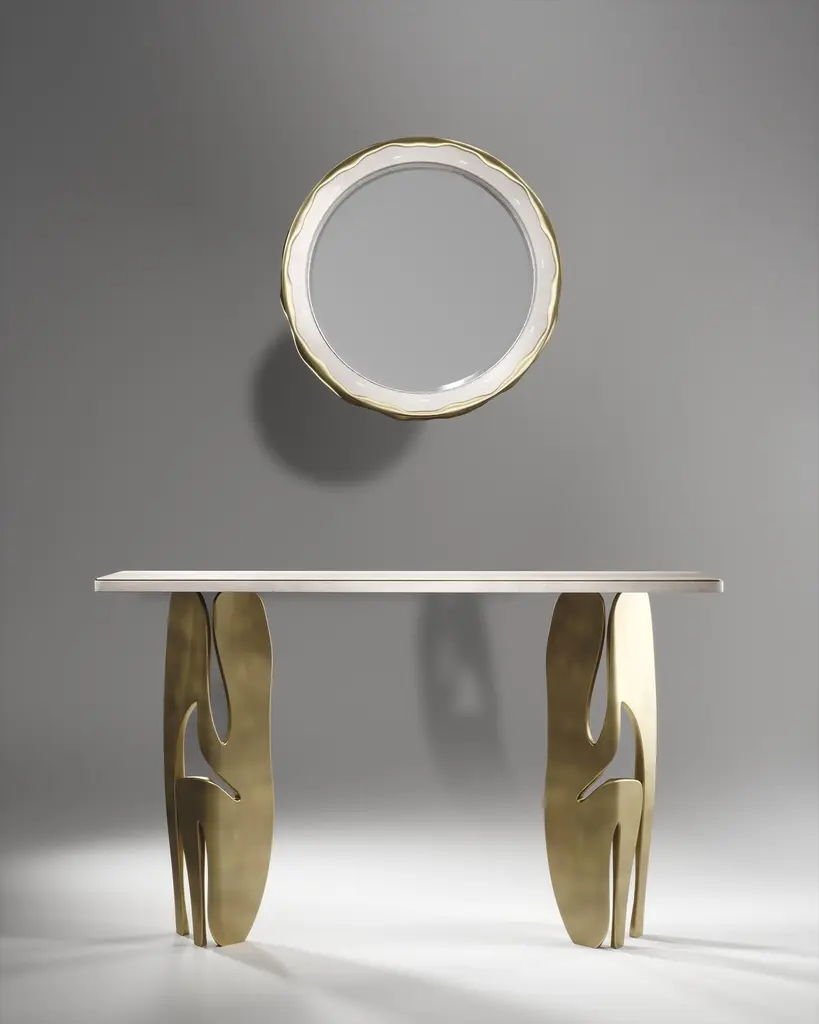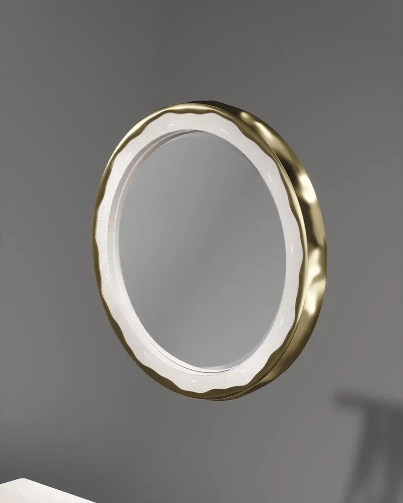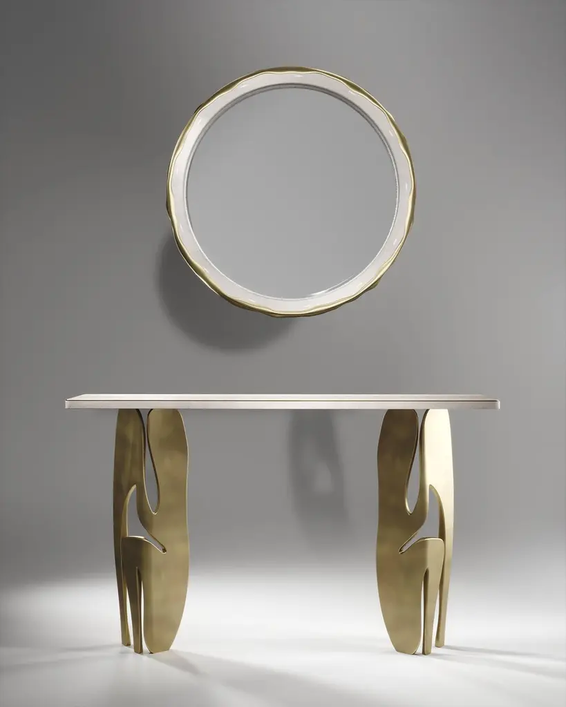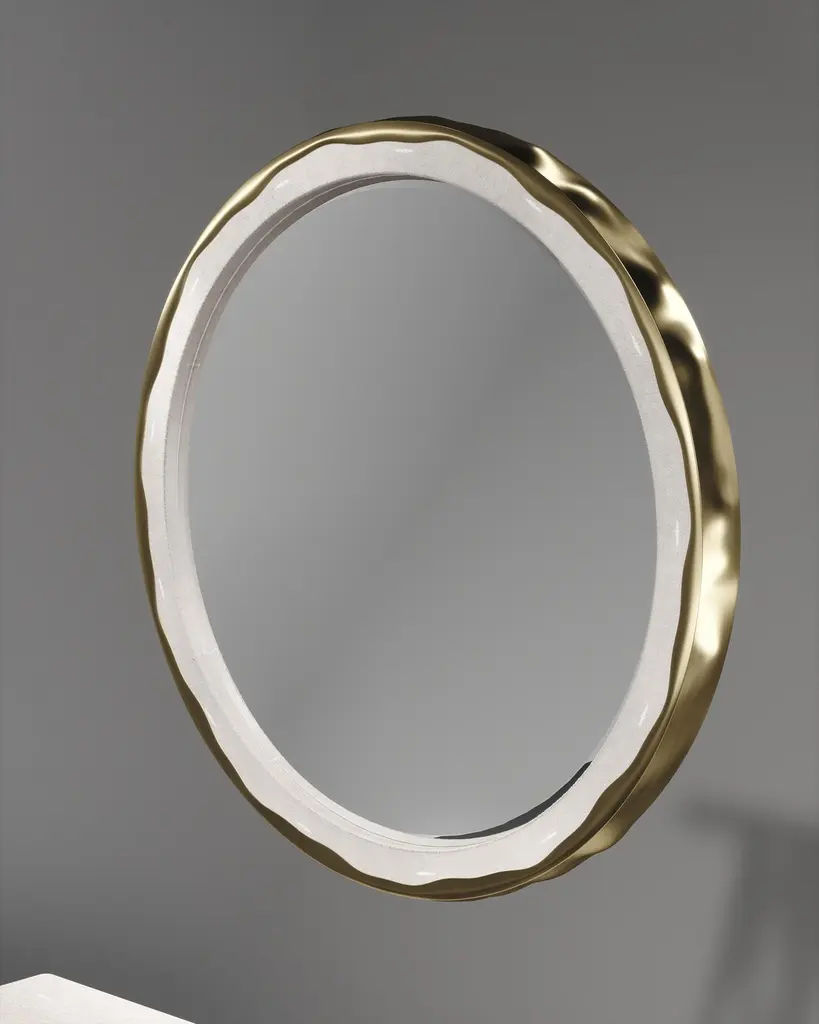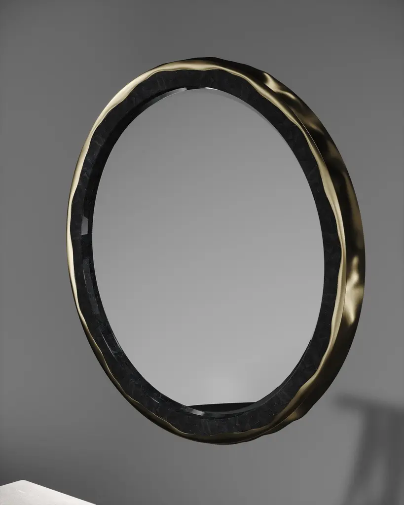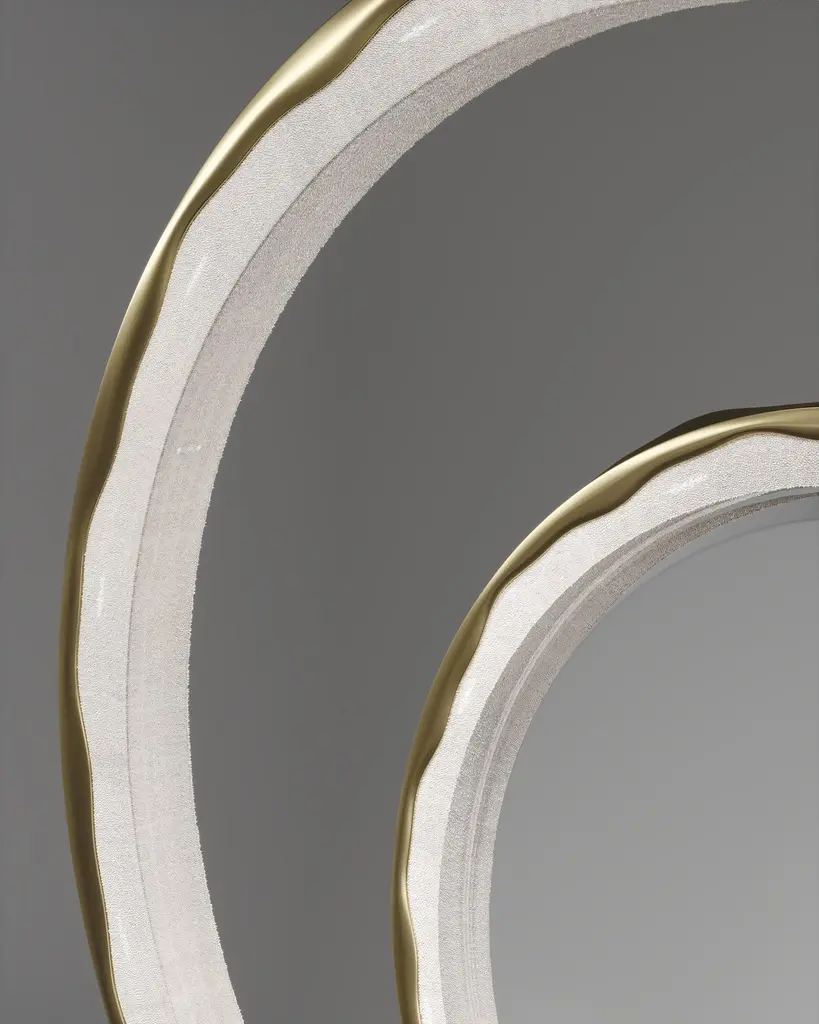 The Paris based label has distinguished themselves since their launch, with their iconic use of shagreen mixed with brass and other exotic materials. All furniture is handcrafted by skilled artisans, ultimately making each piece unique, designed in Paris and produced in the Philippines.The Melting cutout mirror by R&Y Augousti in cream shagreen and bronze-patina brass, is an iconic piece of theirs with their signature "melting" metal detail. Available in other finishes and "non cut-out" versions, see images at end of slide. Custom color and sizing available on request. All shagreen is hand-dyed by our artisans. This finish is called "antique natural" shagreenThe dimensions of this piece are 90 diameter cm x 4 cm All R&Y Augousti pieces are handmade by artisans, ultimately making each piece unique. Wipe clean with soft dry cloth.Acclaimed design duo Ria & Yiouri Augousti have established themselves since the 1990s as pioneers of modern-vintage style through their luxurious Art Deco inspired collections.The Paris based label has distinguished themselves since their launch, with their iconic use of shagreen mixed with brass and other exotic materials. All furniture is handcrafted by skilled artisans, ultimately making each piece unique. All shagreen-covered items should be kept out of direct sunlight, color variants may occur on the stingray and other exotic finishes, but this showcases the Parisian label's commitment to creating authentic luxurious products using natural components.