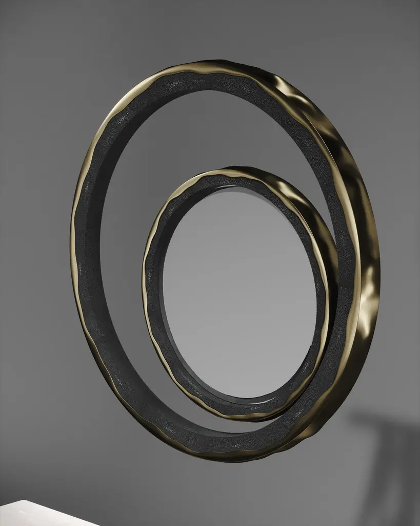 Shagreen Mirror With A Bronze-Patina Brass Frame By R&y Augousti