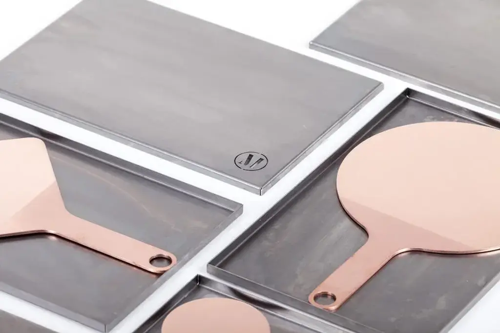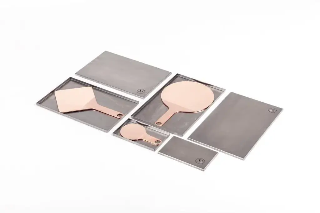 Shapes mirrors square by Mingardo Dimensions: D19 x H30 cm Materials: Polished natural copper with handle in satin natural copper. Box in satin natural iron. Weight: 1-3 kg Also Available in different finishes. The study of the ancient mirrors and their methods of use creates the concept of Shapes Mirrors. Built on traditional gestures but with an outline completely new and contemporary: the division mirror-handle is minimized without variations in the surface but with a polished-brushed finish that highlights the craftsmanship. Shapes mirrors are meant to be used within the domestic environment due to the natural weight of the metal, as a decorative object. Smaller sized pieces can fit and be carried inside a purse, handbag or pocket, and become a portable everyday luxury feature.