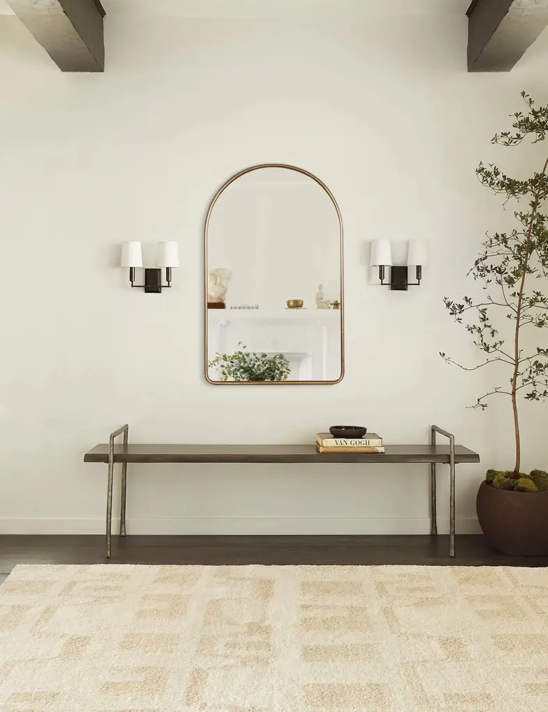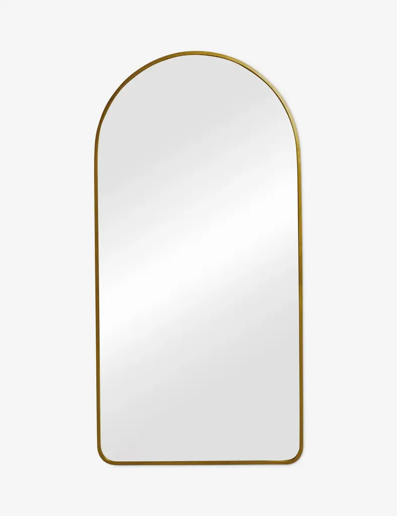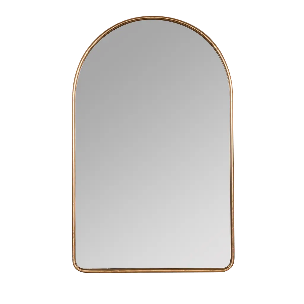 A simple, timeless wall mirror you can add to any room, featuring a metal frame with rounded corners and an arched design.