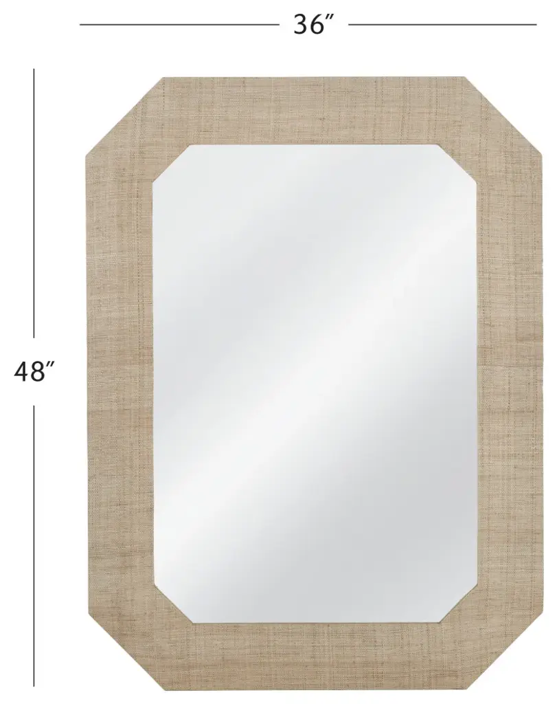 The Shashi Wall Mirror boasts a classic rectangular style with clipped corners, exuding a blend of boho and modern aesthetics. Its brown and natural wood frame, accented with raffia, adds warmth and texture to any space. Crafted with attention to detail, this mirror effortlessly enhances the ambiance of your room.Features:Blends boho and modern aesthetics seamlesslyClassic rectangular style with clipped cornersNatural wood frame with raffia accents adds warmth and textureCrafted with quality materials for stylish reliabilityFor over a century, Bassett Mirror has been synonymous with style and quality, transforming homes with its sophisticated and timeless designs. With a wide-ranging collection of furniture, lighting, mirrors, and art, Bassett Mirror seamlessly blends modern style with classic appeal. From rustic modern to luxe glam, each piece is thoughtfully crafted to inspire and elevate any space. Committed to exceptional value and customer care, Bassett Mirror makes it easy for homeowners to create beautiful, personalized interiors with confidence.