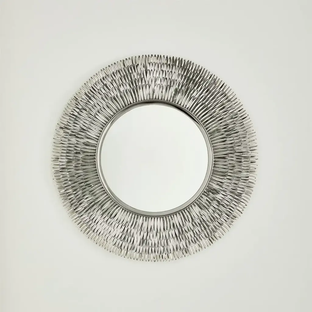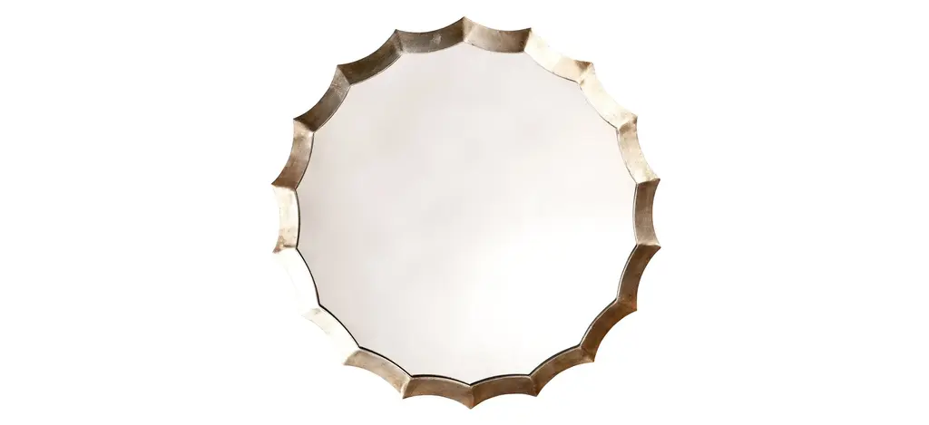The Shatter Mirror is an exciting statement piece that contributes opulent tones and dimensional depth to any space. A pristine frame features beveled mirrored glass with a shattered motif, accented with a gorgeous Burnished Silver finish that peeks out from beneath the cracks. The center mirror of stunning piece also features beveled edges, completing the look.