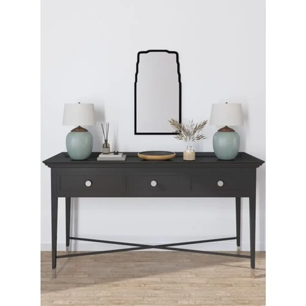 The slender black metal frame accentuates this wall mirror's elegant silhouette, making it a chic addition to traditional and modern rooms alike.