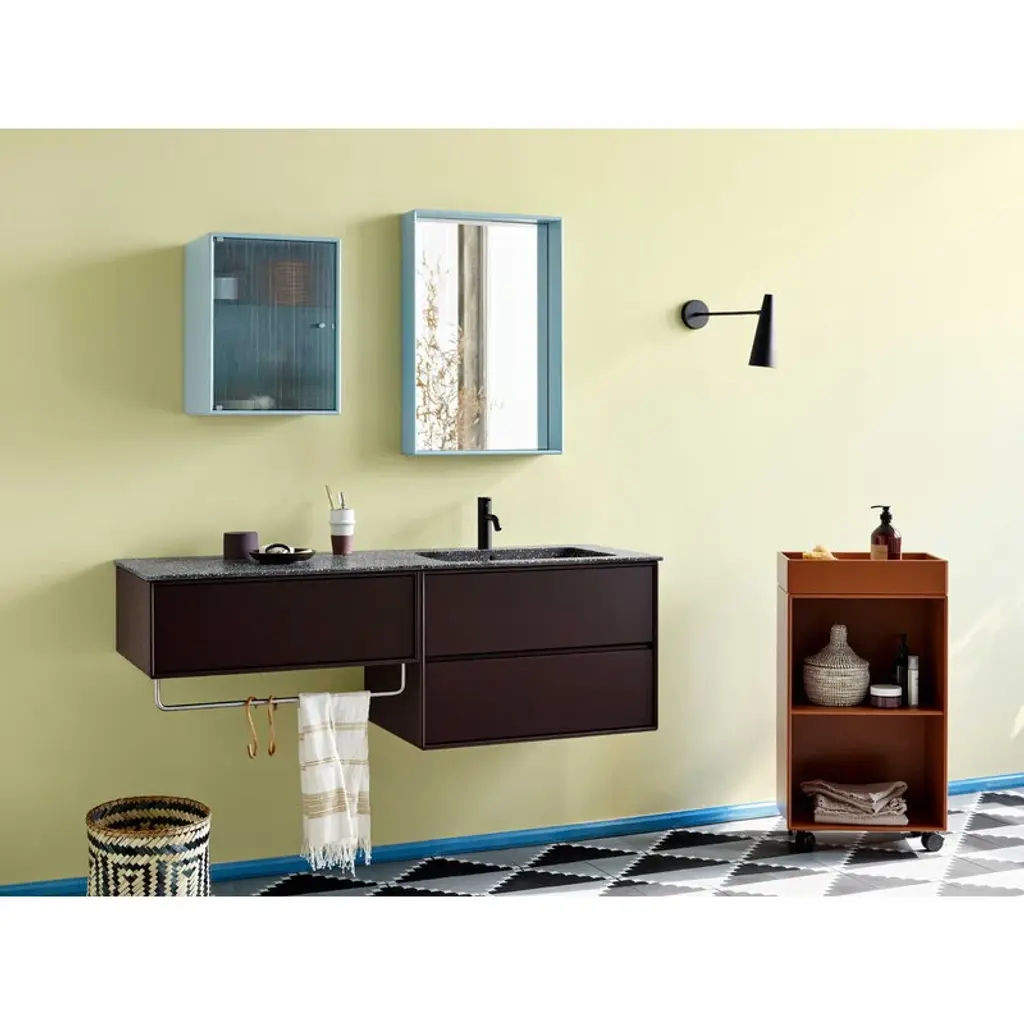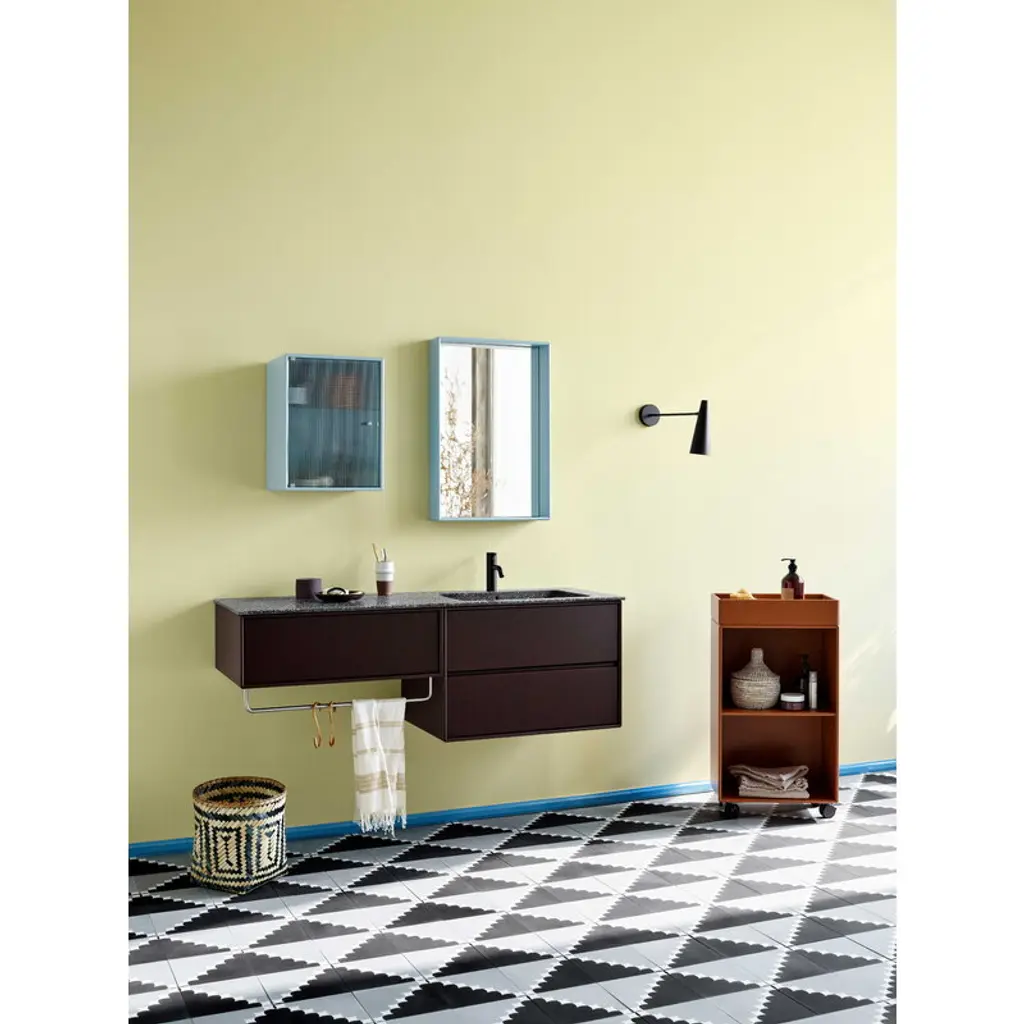 Montana Furniture's Shelfie is a multi-purpose, rectangular mirror that can be mounted on the wall either horizontally or vertically. Made of water-resistant MDF, the mirror is ideal for the bathroom, but can also be hung on the wall of the bedroom, walk-in closet or hallway. The mirror has a frame that serves as a handy storage shelf – there is no easier way to keep your toothbrushes, cotton balls, cosmetics and jars in order! The Shelfie mirror is a part of Montana Selection, a collection of storage furniture and interior objects characterized by a graphic, simplistic form language and subtle, Nordic colors. The Montana products were created by Peter J. Lassen, and all the items have been designed and manufactured in Denmark.