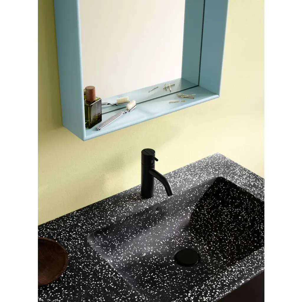 Montana Furniture's Shelfie is a multi-purpose, rectangular mirror that can be mounted on the wall either horizontally or vertically. Made of water-resistant MDF, the mirror is ideal for the bathroom, but can also be hung on the wall of the bedroom, walk-in closet or hallway. The mirror has a frame that not only adds a splash of color to your home décor but also serves as a handy storage shelf – there is no easier way to keep your toothbrushes, cotton balls, cosmetics and jars in order! The Shelfie mirror is a part of Montana Selection, a collection of storage furniture and interior objects characterized by a graphic, simplistic form language and subtle, Nordic colors. The Montana products were created by Peter J. Lassen, and all the items have been designed and manufactured in Denmark.