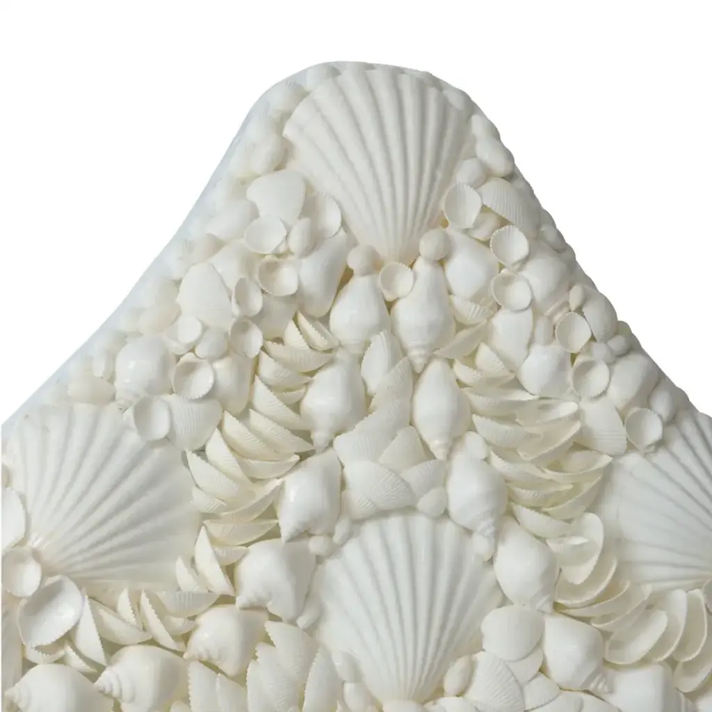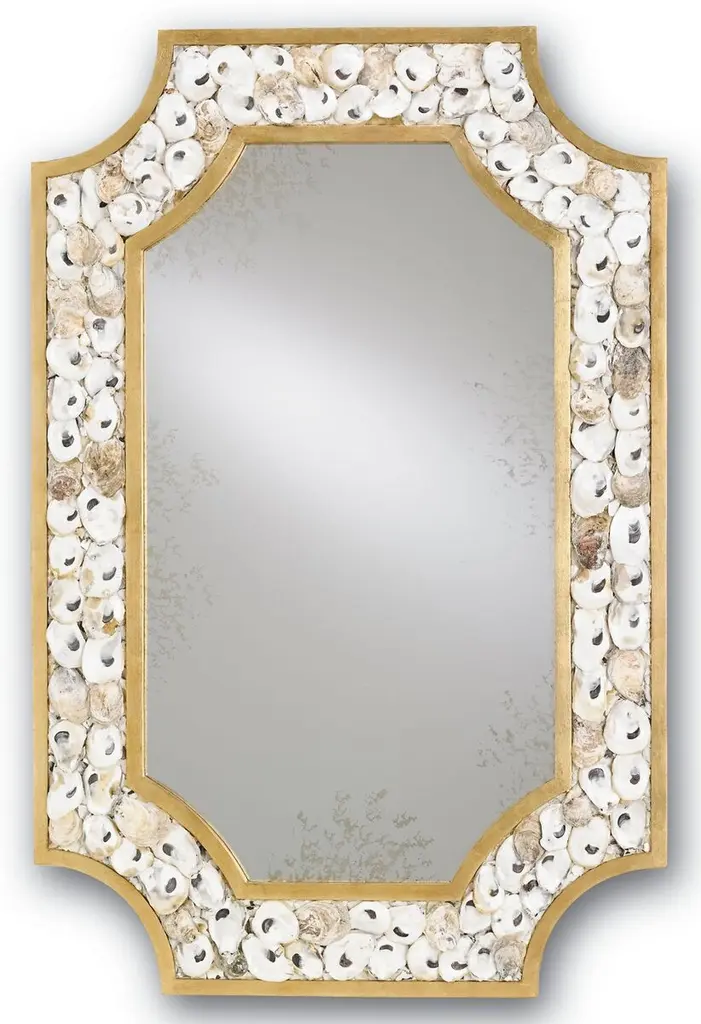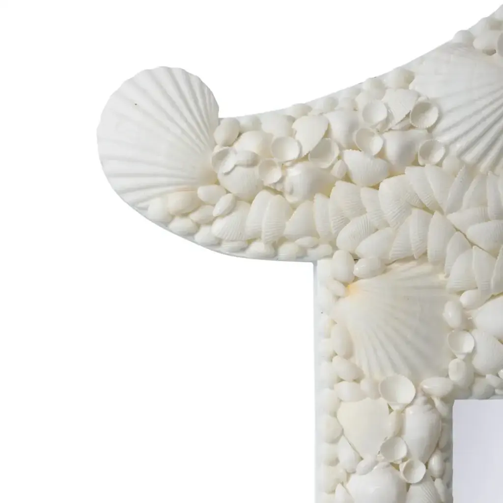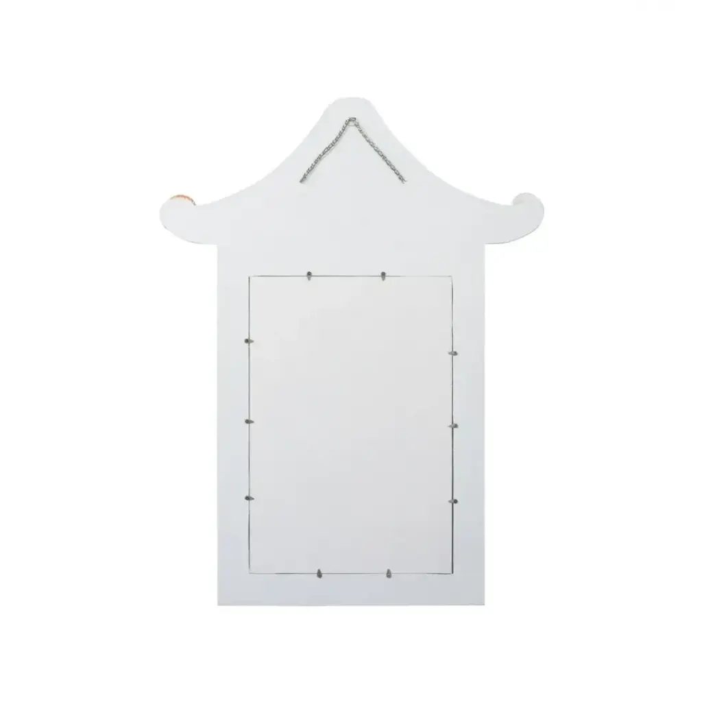 Inspired by the graceful lines of traditional pagoda architecture, this mirror is artfully constructed from natural shell, creating a luminous surface with subtle iridescence. Its tiered silhouette and intricate detailing evoke a sense of timeless elegance, blending coastal charm with classic Asian design influences.