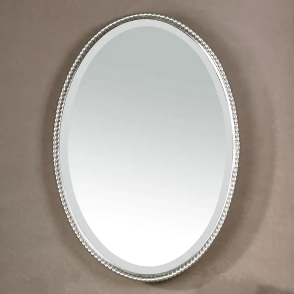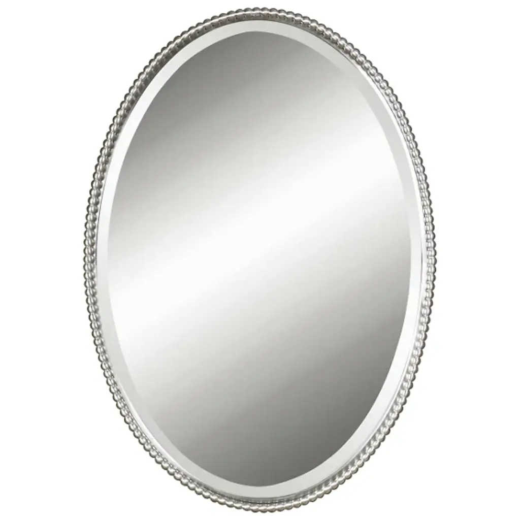 The Uttermost Sherise Oval Mirror smartens up your interior decor with its classy appearance while a moderate pattern at the border brings in an ideal touch of design. The Sherise Oval Mirror features beaded hand forged metal frame with a brushed Nickel or distressed oil rubbed Bronze finish.