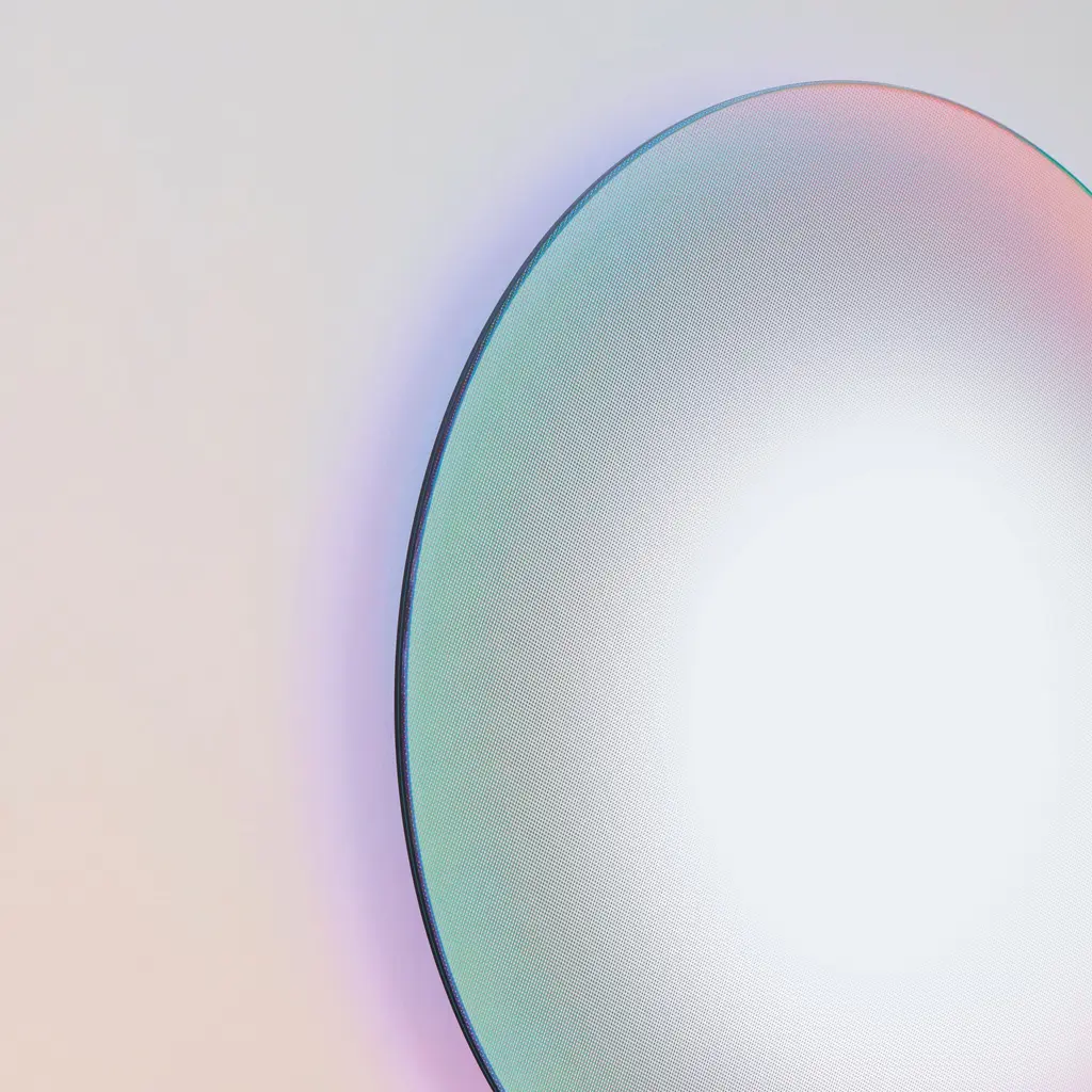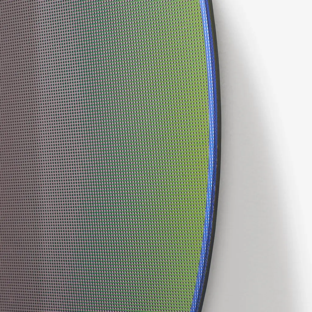 Created through refined glass making techniques, this decorative, multi-chromatic mirror features the iridescent finish signature to the Shimmer collection from Glas Italia. A shaded silvering mix with a fine geometric decoration creates a fascinating and animated mirror, ever-shifting according to the light source and the vantage point. Designed by Patricia Urquiola.
