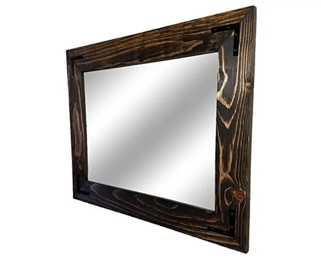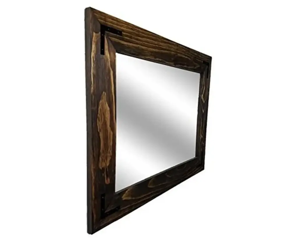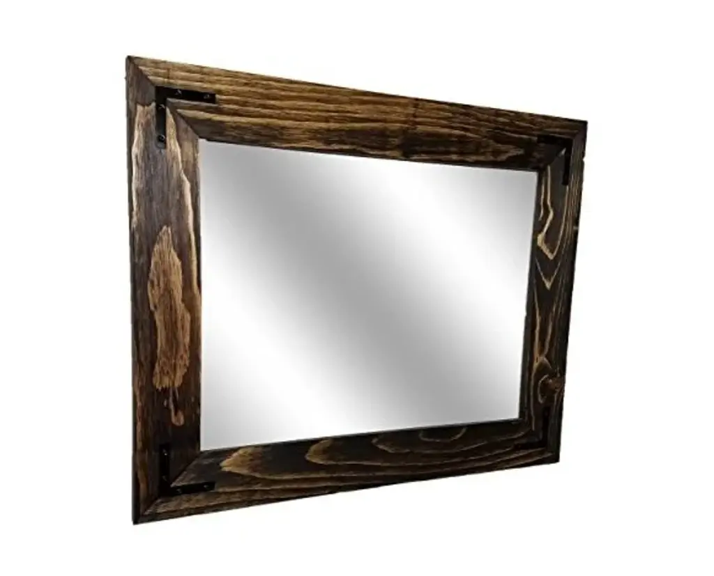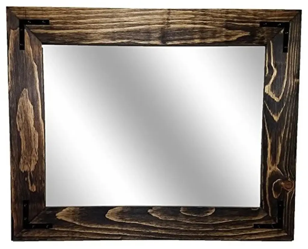 Shiplap Framed Mirror With Decorative Corner Brackets, Dark Walnut, 42"x30"