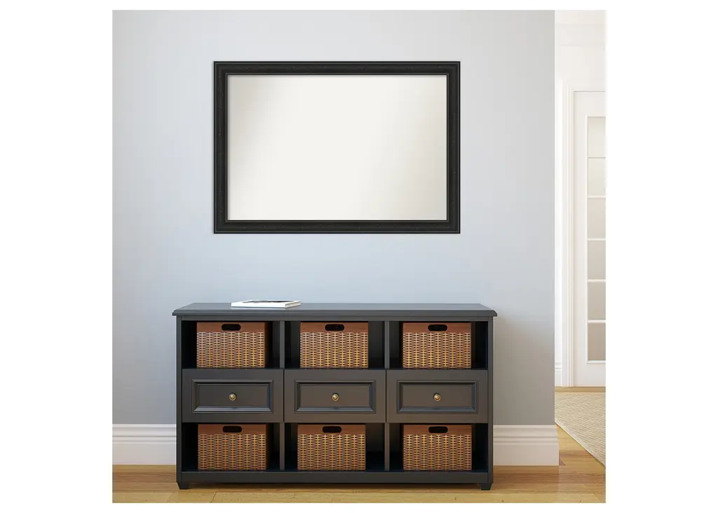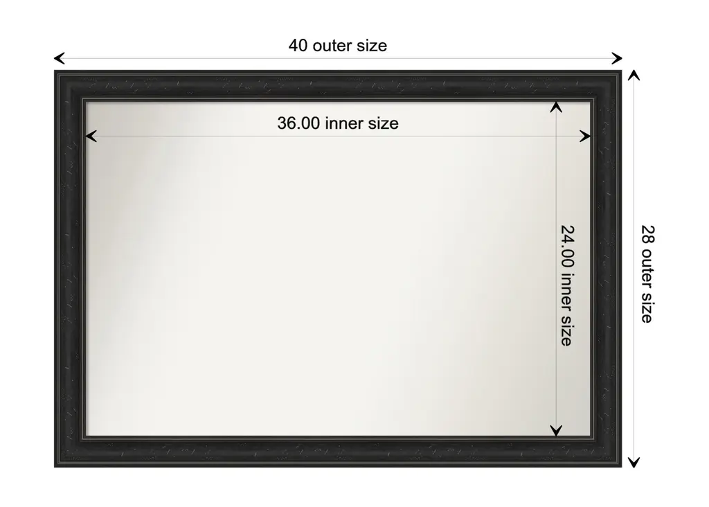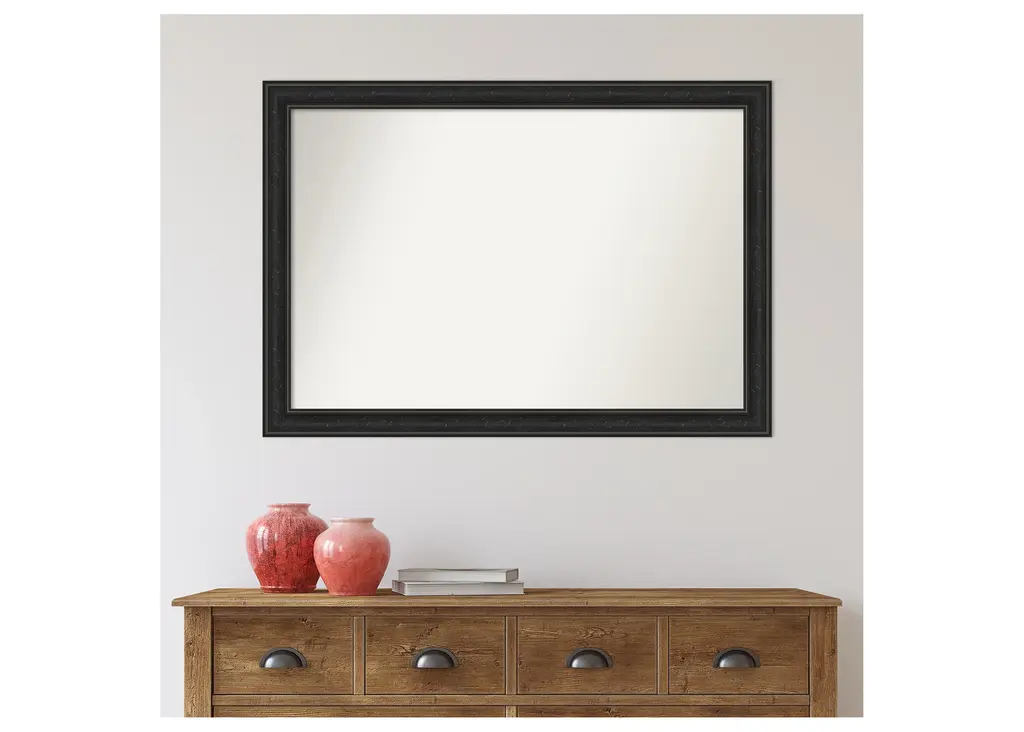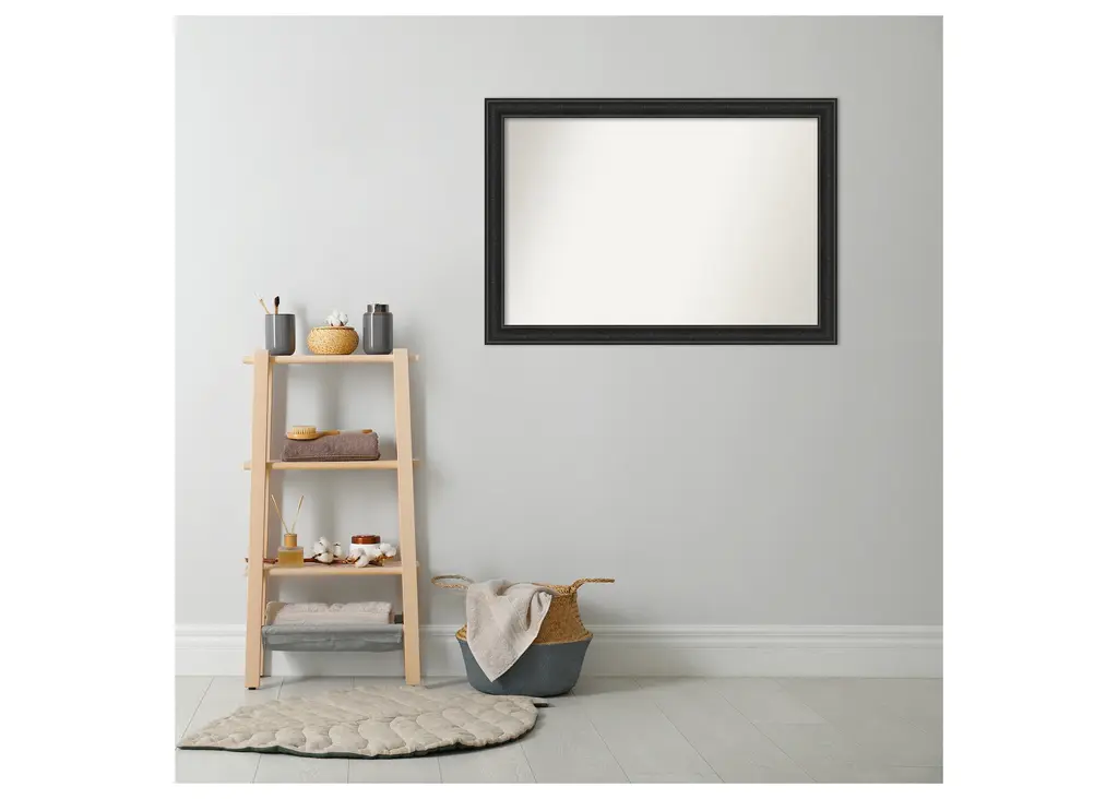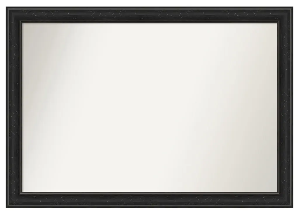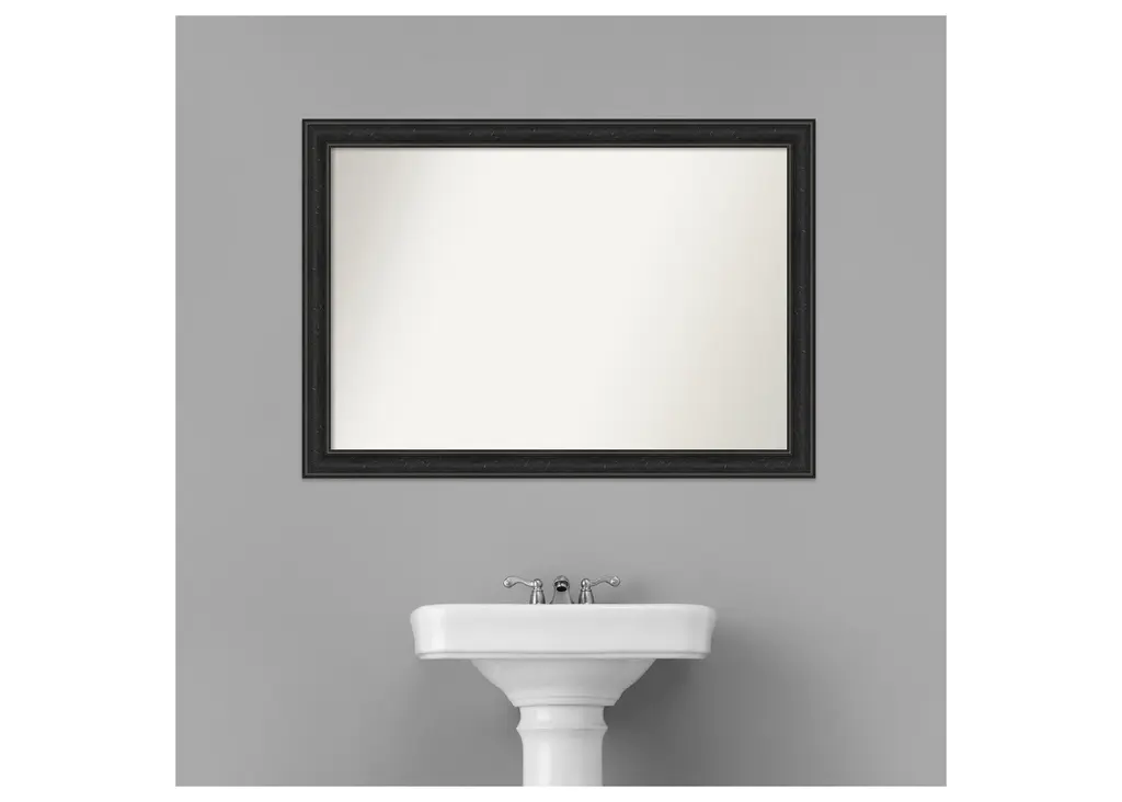 Give your bathroom the finishing touch with this Non-Beveled Wall Mirror framed with the Shipwreck Black Narrow frame. Individually made using traditional custom framing techniques, it has the quality you would expect from your local frame shop. It holds its value with premium finishing that can be appreciated up close.Features:MIRROR DETAILS: This mirror features premium glass for a clear, undistorted image and has a non-beveled surface to maximize the viewing area.FRAME DETAILS: The Shipwreck Black Narrow Frame is a distressed black frame with a grey wash and weathered pockmark details. The frame is 2.25 in. wide and stands 1 in. off the wall.PROTECTIVE BACKING: This wall mirror is finished with a solid surface backing to ensure stability and prevent moisture and dust buildup.HASSLE-FREE HANGING: All mirrors have durable hanging hardware attached to the back to hang vertically or horizontally, along with hanging hooks and nails.ASSEMBLED IN THE USA: Each piece is assembled to order in Madison, WI USA.FOR HOME OR COMMERCIAL USE: Because of our attention to detail and focus on artistry, architects, interior designers, and homeowners alike choose this mirror to create beautiful living spaces.