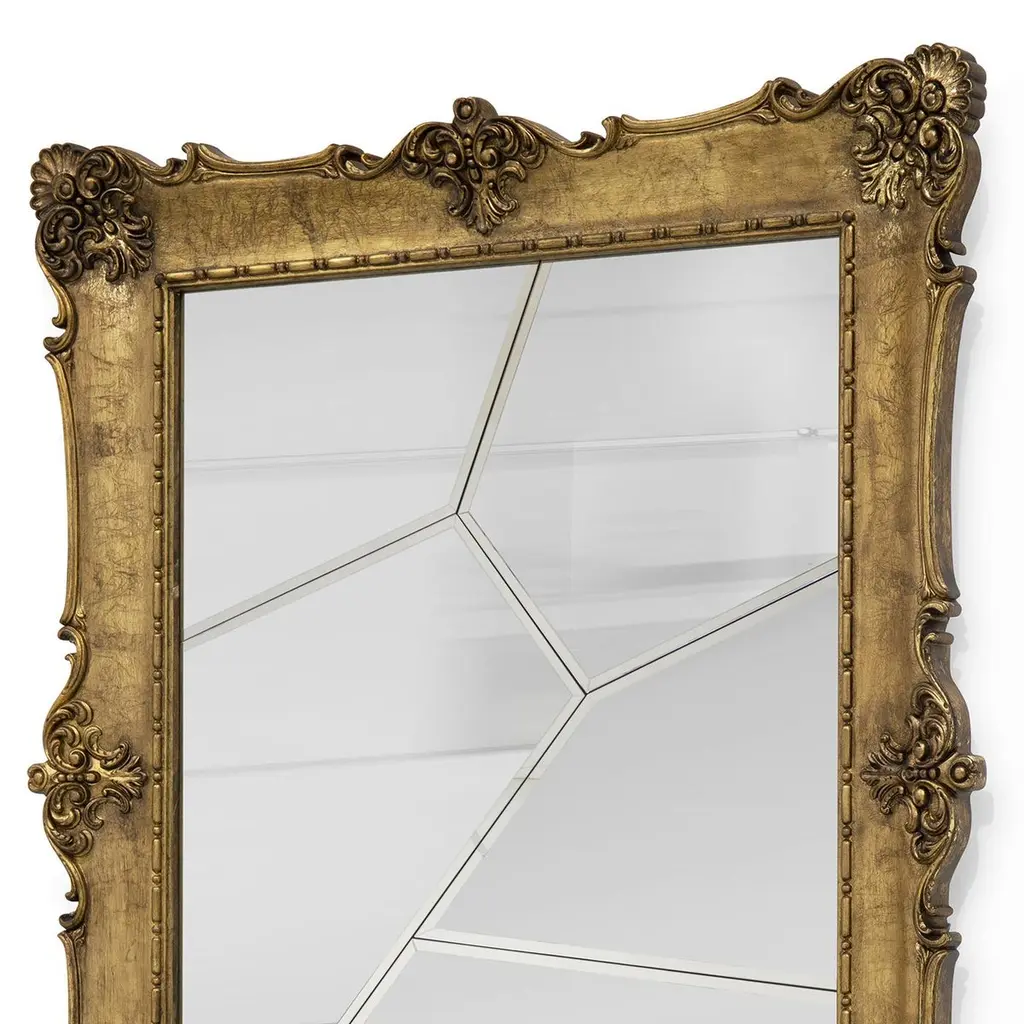 Mirror Shiver with solid wood structure in.Aged brass finish. With fragmented bevelled. Mirror glass.