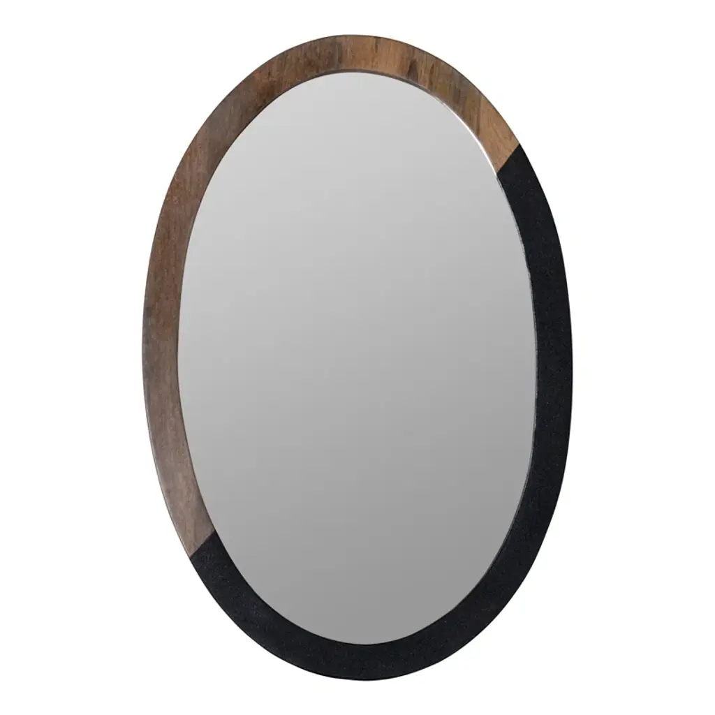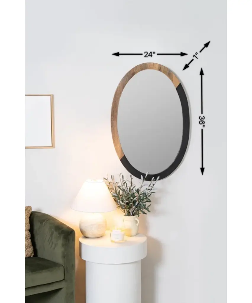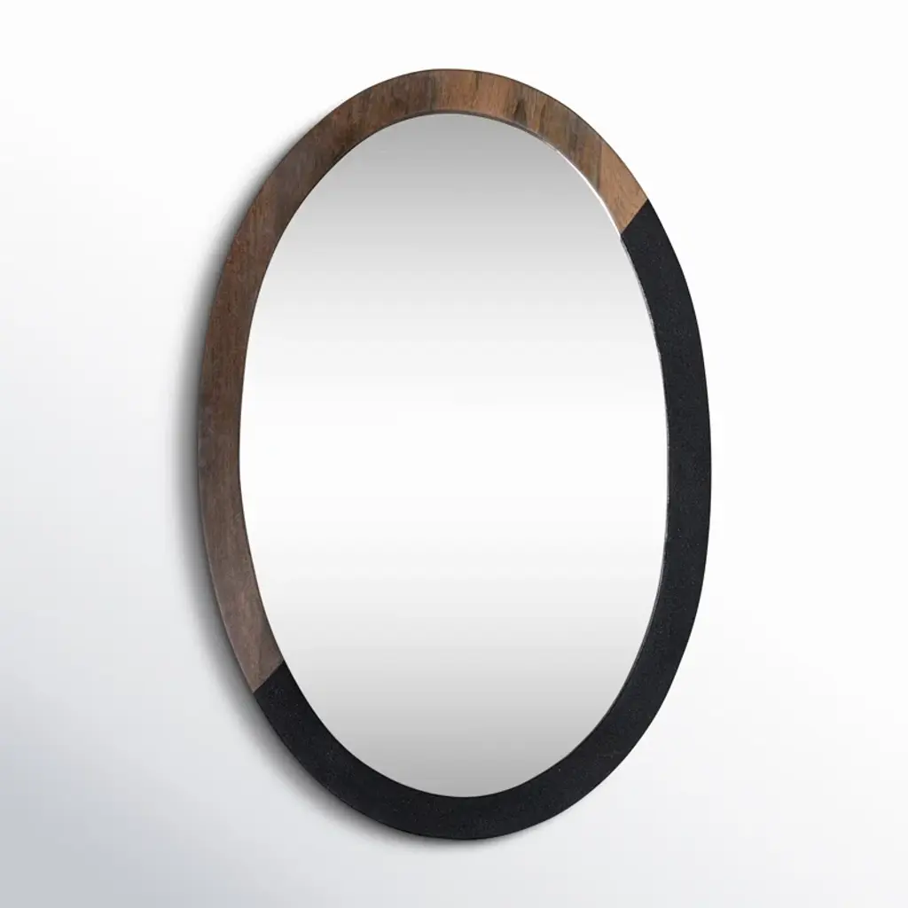 Break away from the standard. With this accent mirror and its organic, freeform silhouette, you can create an unexpected focal point in your space. Crafted with a metal frame in an antique brass finish, this mirror features a flowing shape that's wide on one side than it is on the other. This irregular shape, along with the smooth mirrored glass surface, breaks up the solid feeling of your walls. This mirror hangs with an included cleat system.