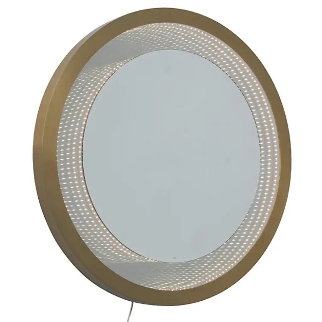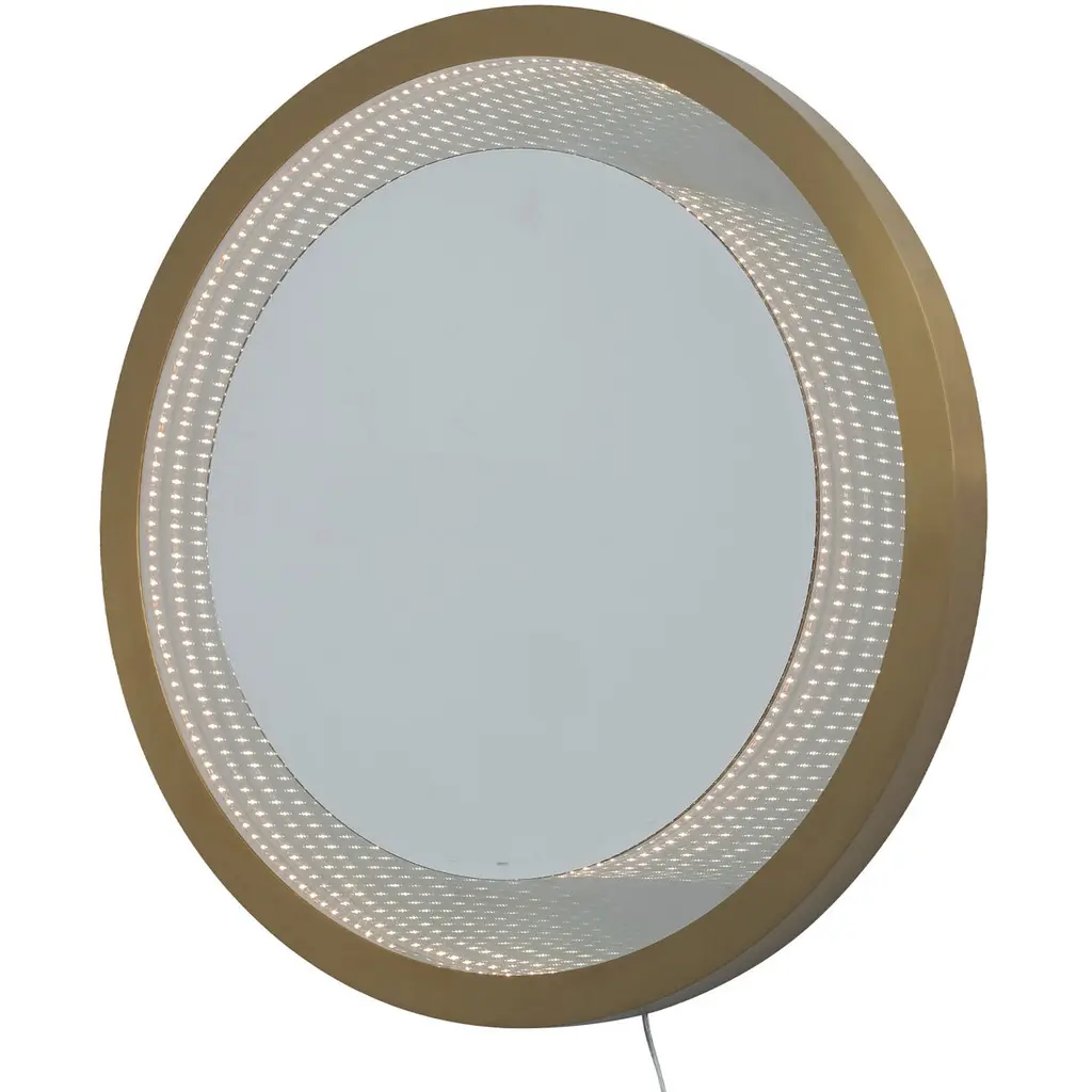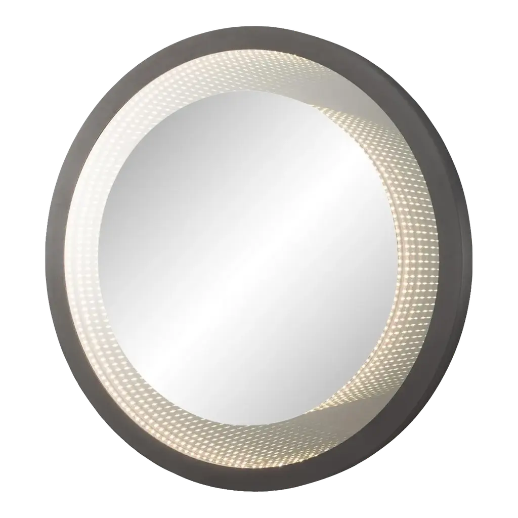 Round out inside spaces with the clean, contemporary look of the Signature 83996 Backlit LED Mirror from Elan Lighting. This circular fixture is ideal for softening the angular features of modern and contemporary settings. Its clean geometry complements a range of décor. The piece sets a ring of strong, energy-friendly LED lamping behind a translucent diffuser for minimal glare and a standout floating silhouette. The LED ring is placed between an outer mirror frame and an inner circular mirror, creating an enduring appeal.
