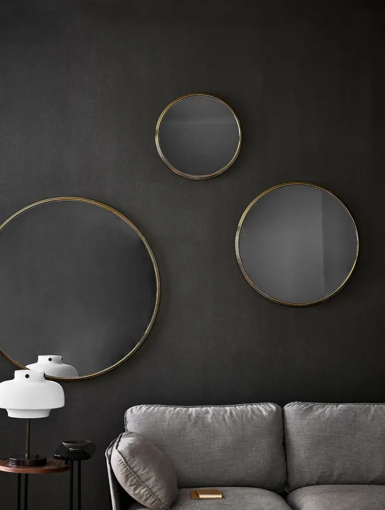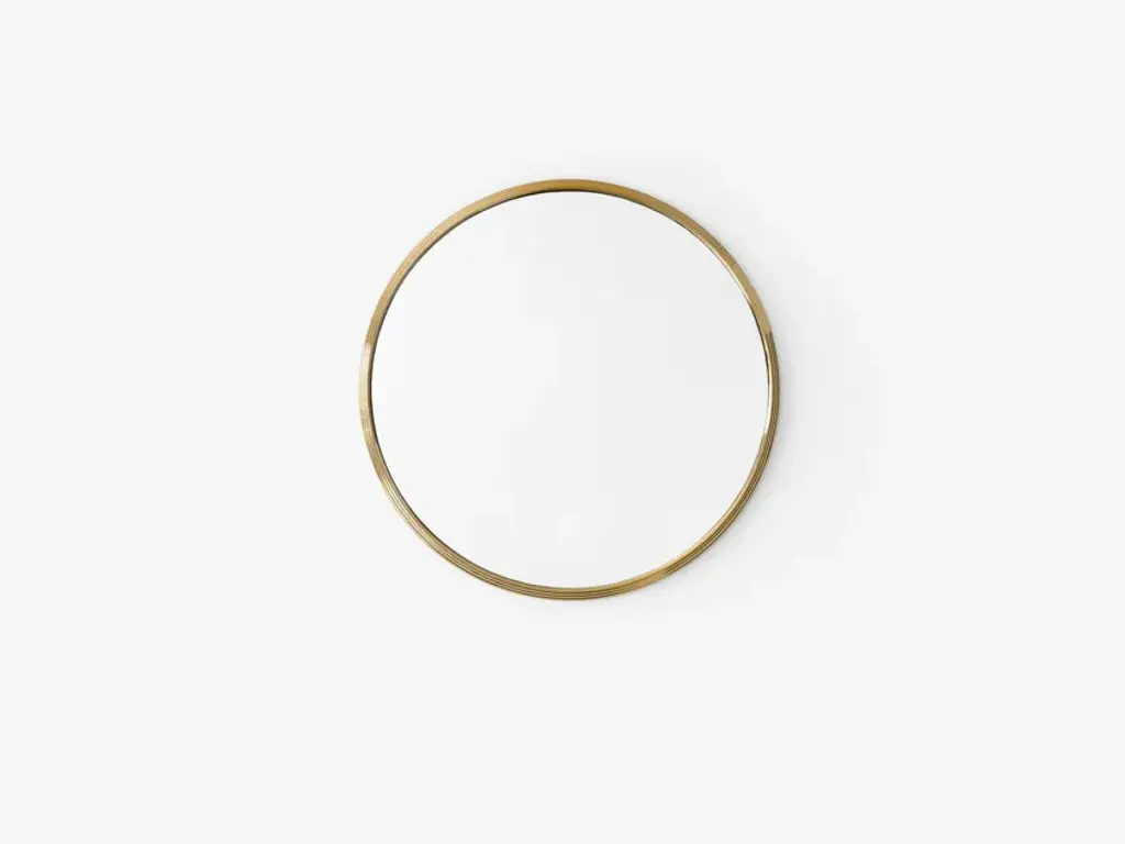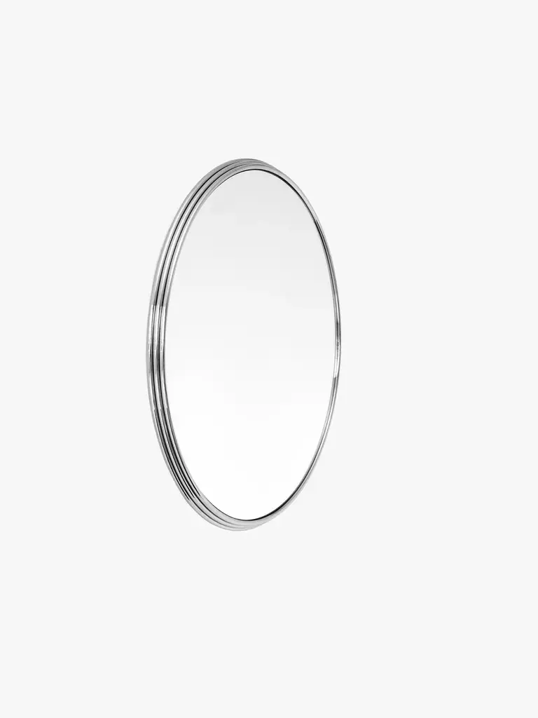 The Sillon series of mirrors, designed by Sebastian Herkner for &Tradition, takes its cue from the French Art Deco movement. Named after the French word for ‘groove,’ the Sillon series of mirrors is punctuated with a corrugated frame that contrasts beautifully with the smooth, reflective glass. Hang at different heights, alone or in decorative configurations in a hallway, bathroom or bedroom.Production processThe frame is made of Ø10mm solid steel rods that are welded together, polished and then electroplated. A high-quality silver-coloured mirror is subsequently installed in the frameEnvironmentIndoorMaterialPlated steel and silver coloured mirrorColoursStainless SteelBrass