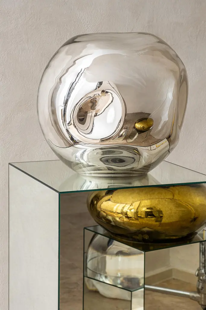 Silver Half Globe Mirror by HomaDimensions: D 30 x H 16 cmMaterials: Blown Glass. Silver Mirror. Silver Mirror Block.HOMA is a contemporary design atelier based in Istanbul. The atelier’s trademark processes are handblown glass, glass fusing and mirroring, created through the use of multidisciplinary techniques and materials. Over time, with meticulous research and experimentation HOMA has acquired unique expertise in mirrors, lighting and home interior objects thus elevating things of function to the status of art. Handcraft HOMA has discovered one of the last remaining masters of handcrafted mirroring in the Eastern Mediterranean. The atelier is original in its simultaneous use of different techniques to create organic and flowing mirror shapes. Each piece celebrates reflection, translucency, movement, light, time, multiple layering and aesthetic, spontaneity…Object HOMA’s pieces are an exploration of organic, abstract, as well as unexpected flowing lines and shapes. Our design service offer is presented in a catalogue of over 50 designs in fluid and geometric shapes achieved through multidisciplinary techniques.Materiality Through the use of mixed textures and the layering of mirror elements unexpected effects are created on glass, which play with one’s visual perception as well as the surrounding space. Glass, stone, marble, messing mirror techniques, bronze, wood and clay are just some of the Earth’s materials that find their way into HOMA’S offerings. HOMA offers a vast materials library.Architecture Formally trained in interior architecture, HOMA founder, Tuğba Koç has transformed her knowledge and experience into layered aesthetic design objects. Now, with a team of architects and artisans, Tuğba applies her hands in a workshop environment on interior and exterior objects to enrich earth-derived, breathing, living materials. HOMA’s interior objects are informed by art and driven by the philosophy that nothing artificial should be allowed to interfere with the energy of one’s living environment.