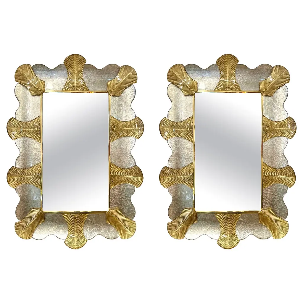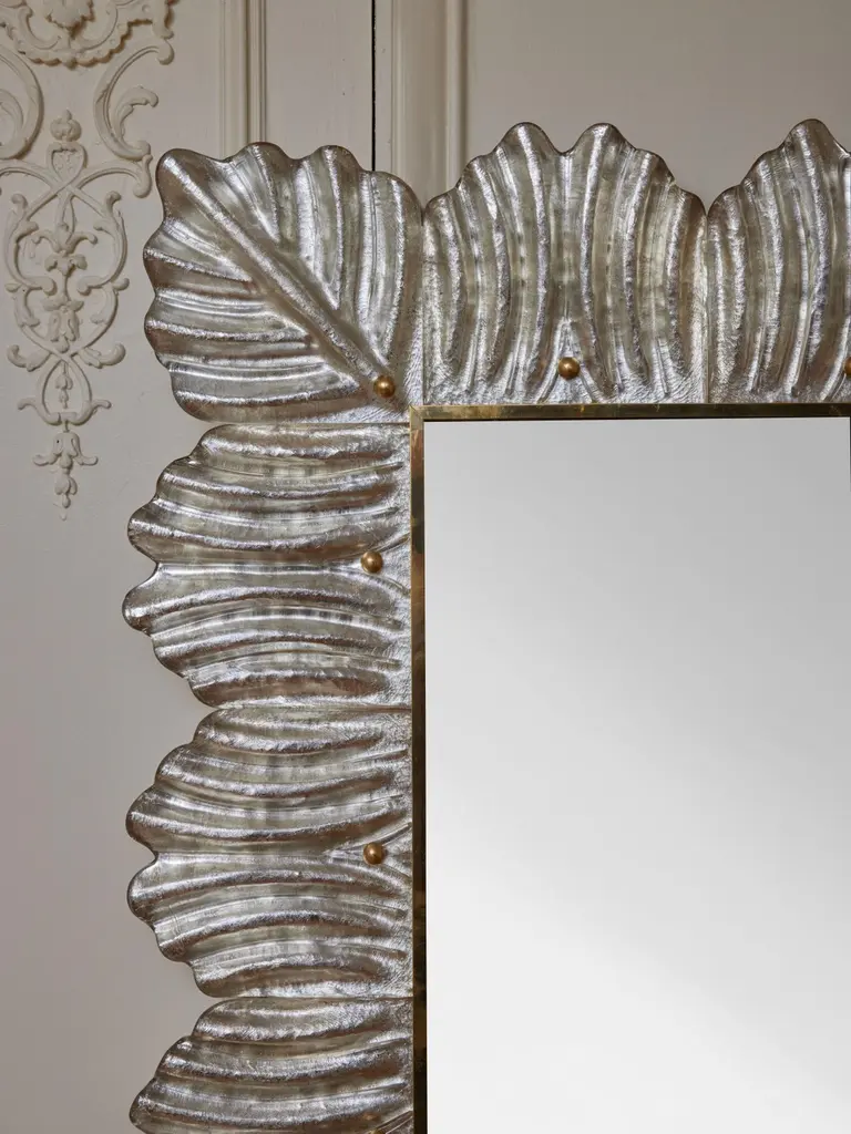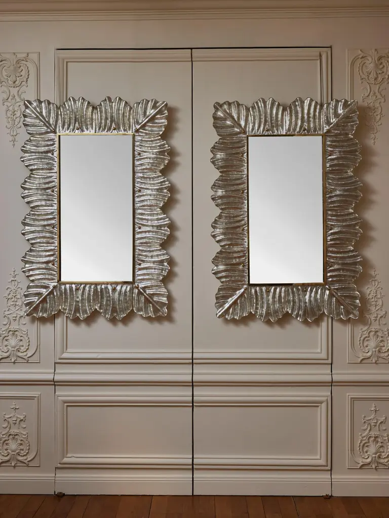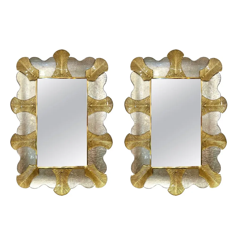 Pair of "Leaf" mirrors with frame in sculpted Murano glass, gilt with silver leaf.Creation by Studio Glustin.Italy, 2023.