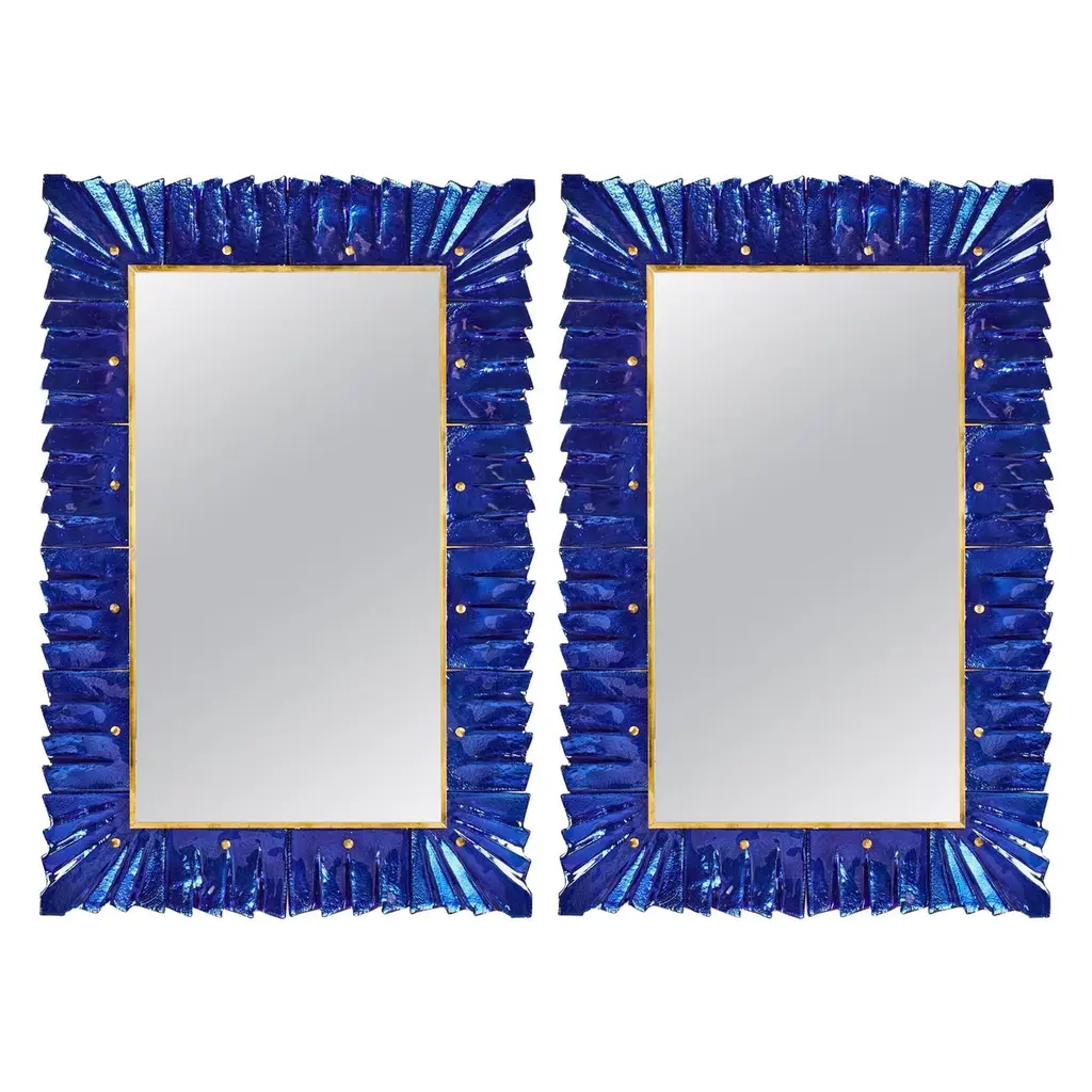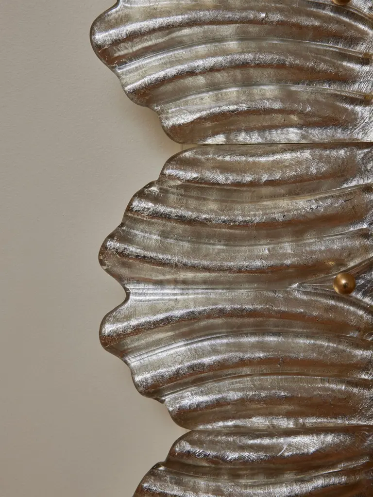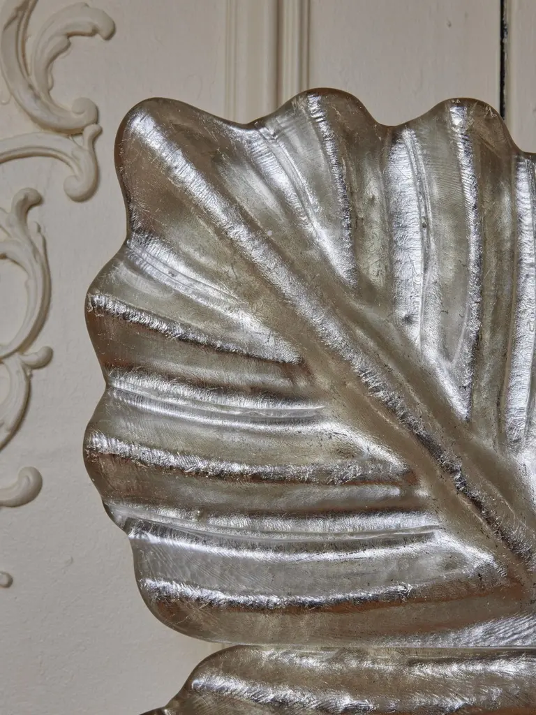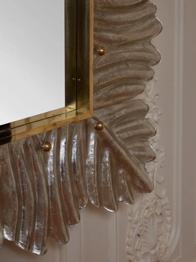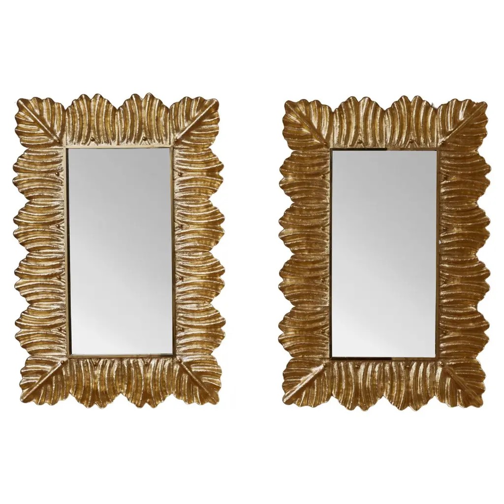 Pair of "Leaf" mirrors with frame in sculpted Murano glass, gilt with silver leaf.Creation by Studio Glustin.Italy, 2023.