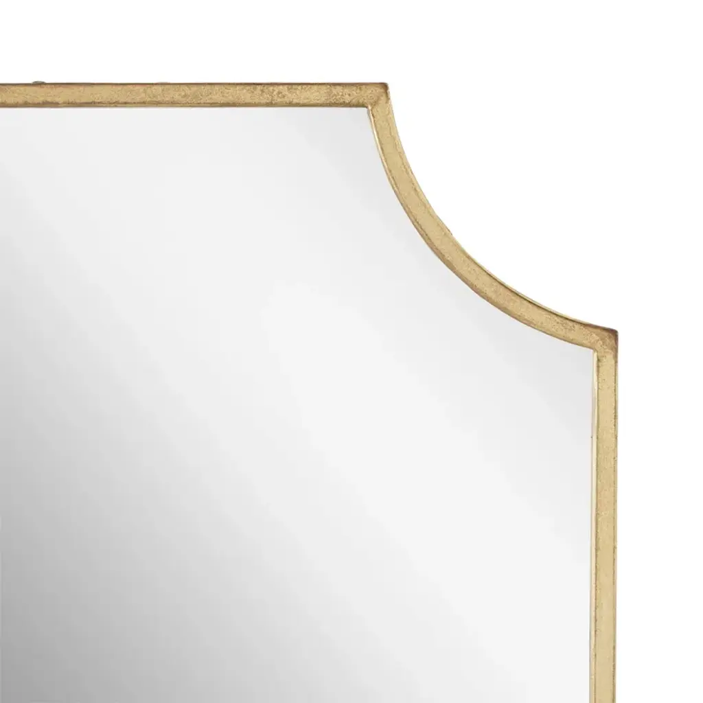The beautiful Simone Gold Mantle mirror features an intricate hand-finished frame. This piece is sure to add a statement to a space of any style.