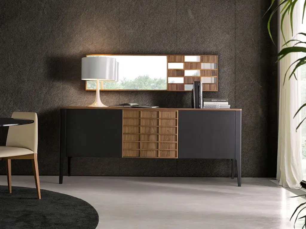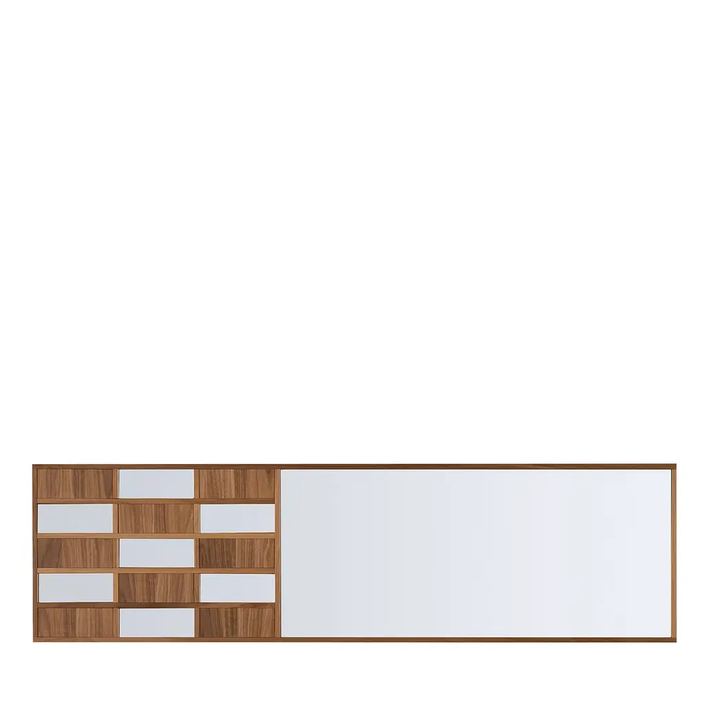 Rectangular wooden wall mirror from the SINGAPORE collection. Mirror with Canaletto wood profile and mirror. Havana Canaletto finish, Silver mirror.13 finishes available.