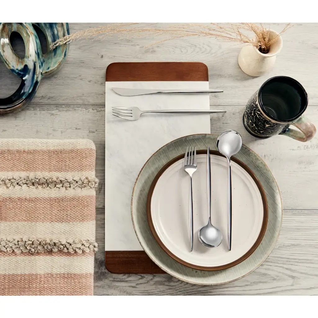 Add a sense of occasion to meal times. Each element of the Zephyr Mirror Flatware Set by Skandia is a testament to the notion that less is more. With a trend-setting design aesthetic and no compromise quality ethos, Zephyr is high-end designer flatware within reach. Its precise, minimal lines exude effortless elegance and Zephyr's oversized head parts, polished to a brilliant mirror finish would excite any art enthusiast.