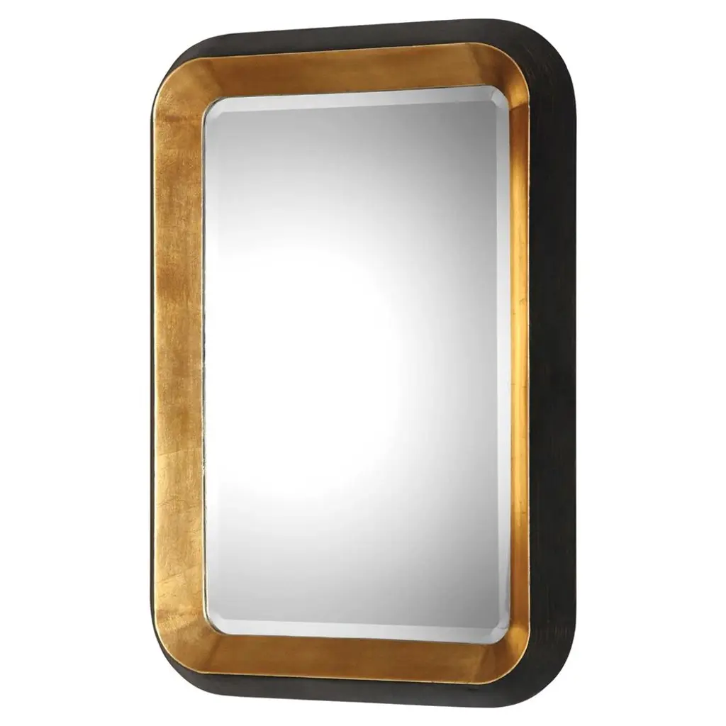 Skylar Hollywood Regency Two Tone Antique Gold Leaf Black Iron Beveled Wall Mirror