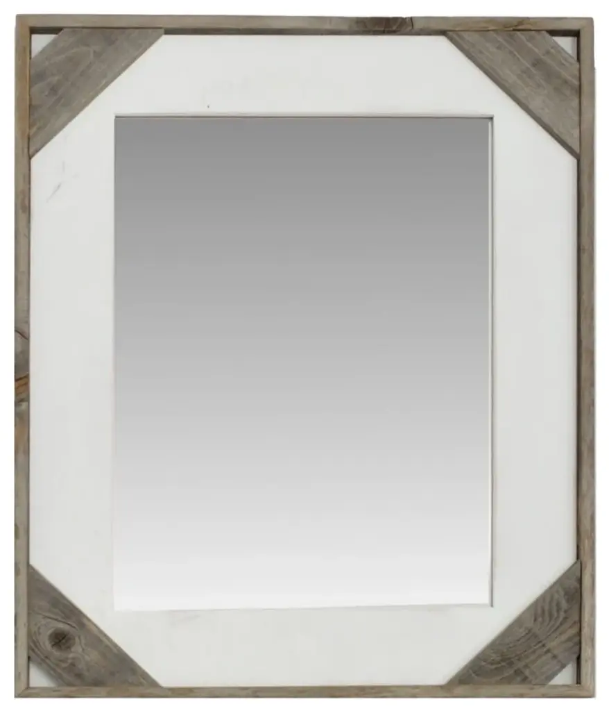 SKYLINE MIRRORThe Skyline Mirror has the rustic natural barn wood edge and inside Barnwood corner blocks. The inside of the mirror''s frame is an knotty-alder wood painted white. This mirror could be used in a lot of places; however, customers have loved this mirror as a bathroom mirror.The mirror comes with all the hanging hardware, and our hassle-free return policy if you do not absolutely fall in love it like others have.Made in Mapleton, UtahFrame width is 4 and 3/4 inches wide (including the outside edge)Hanging hardware includedCustom sizes available over the phoneBarnwood edge and corner blocks are 100% authentic reclaimed barnwood.Our mirrors are sold by their exterior dimensions. Select a size option,