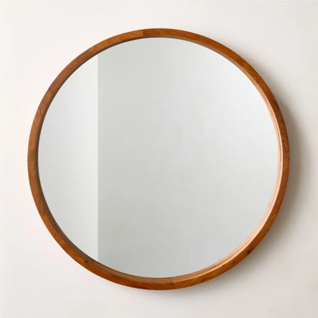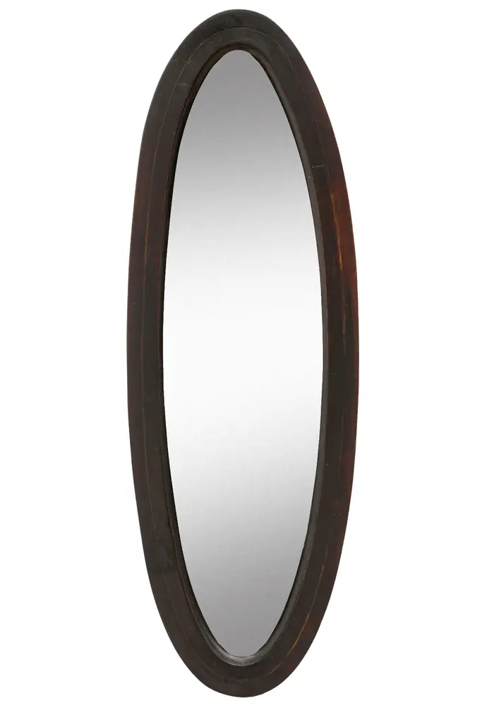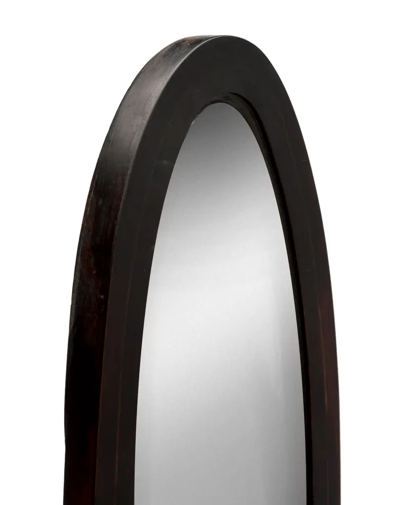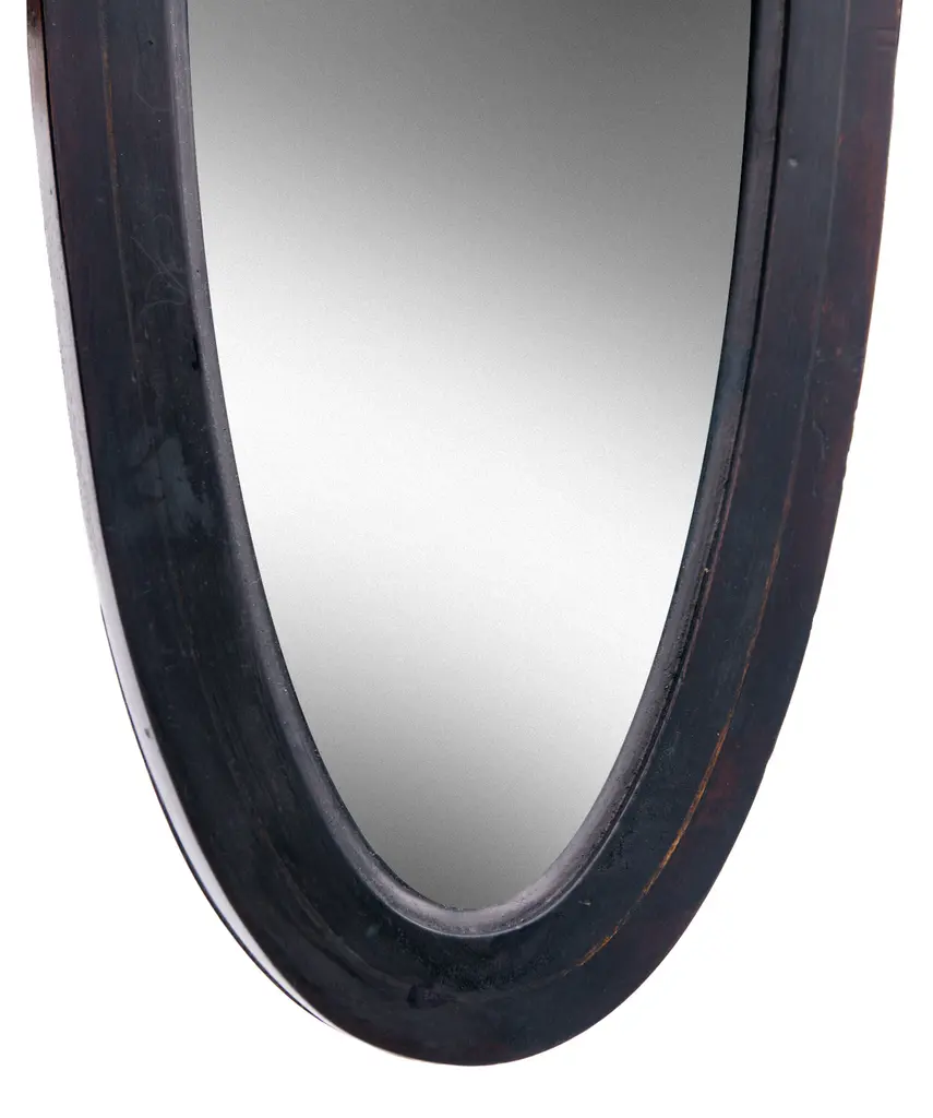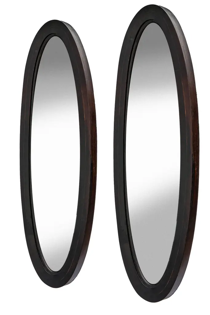 Pair of handcrafted ebonized mahogany beveled wall mirrors.