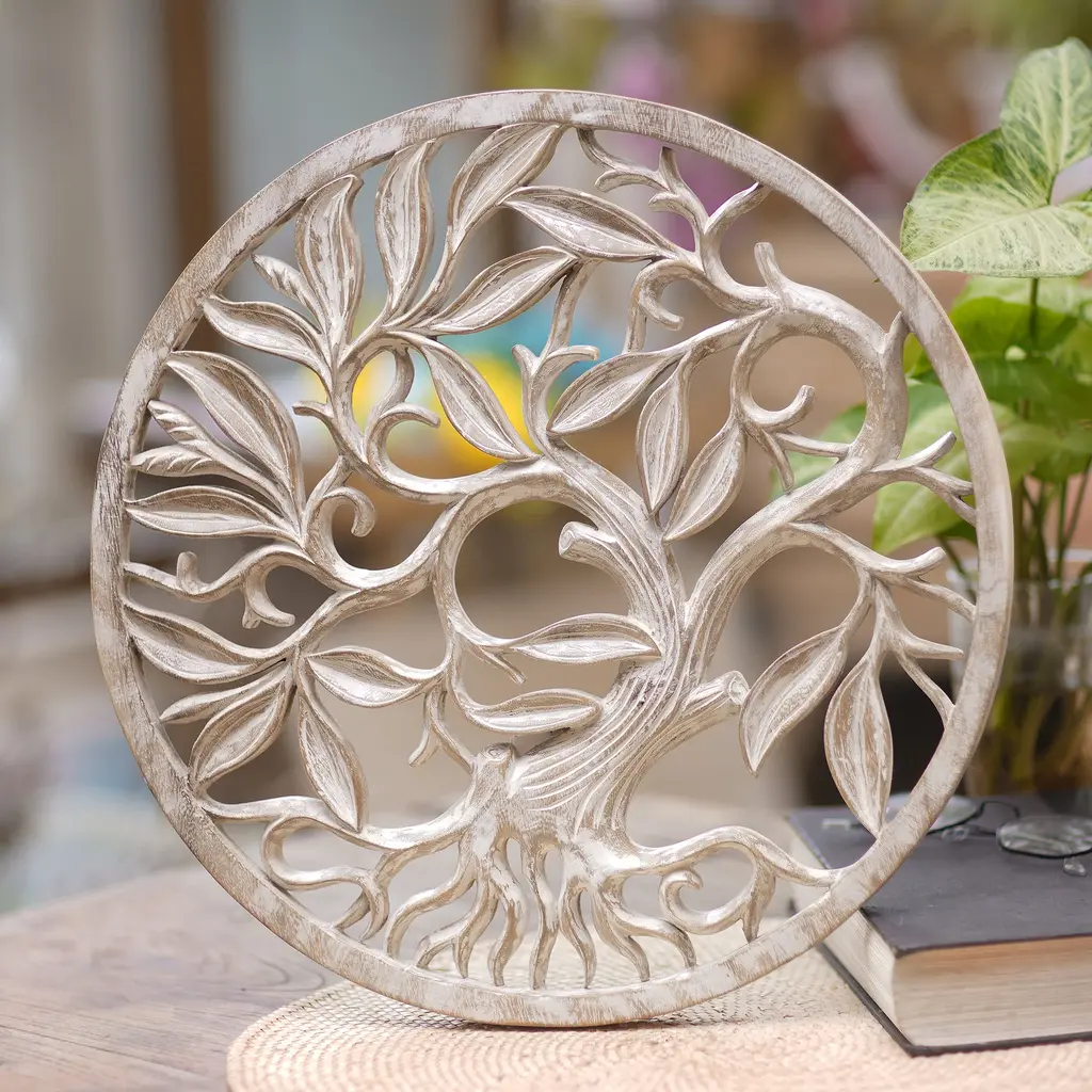 Inspire the energy of a botanical garden in your living room with this beautiful small graphite mirror. The flower-like silhouette is crafted from wide strips of iron, which round out to a beautiful, geometric circle.