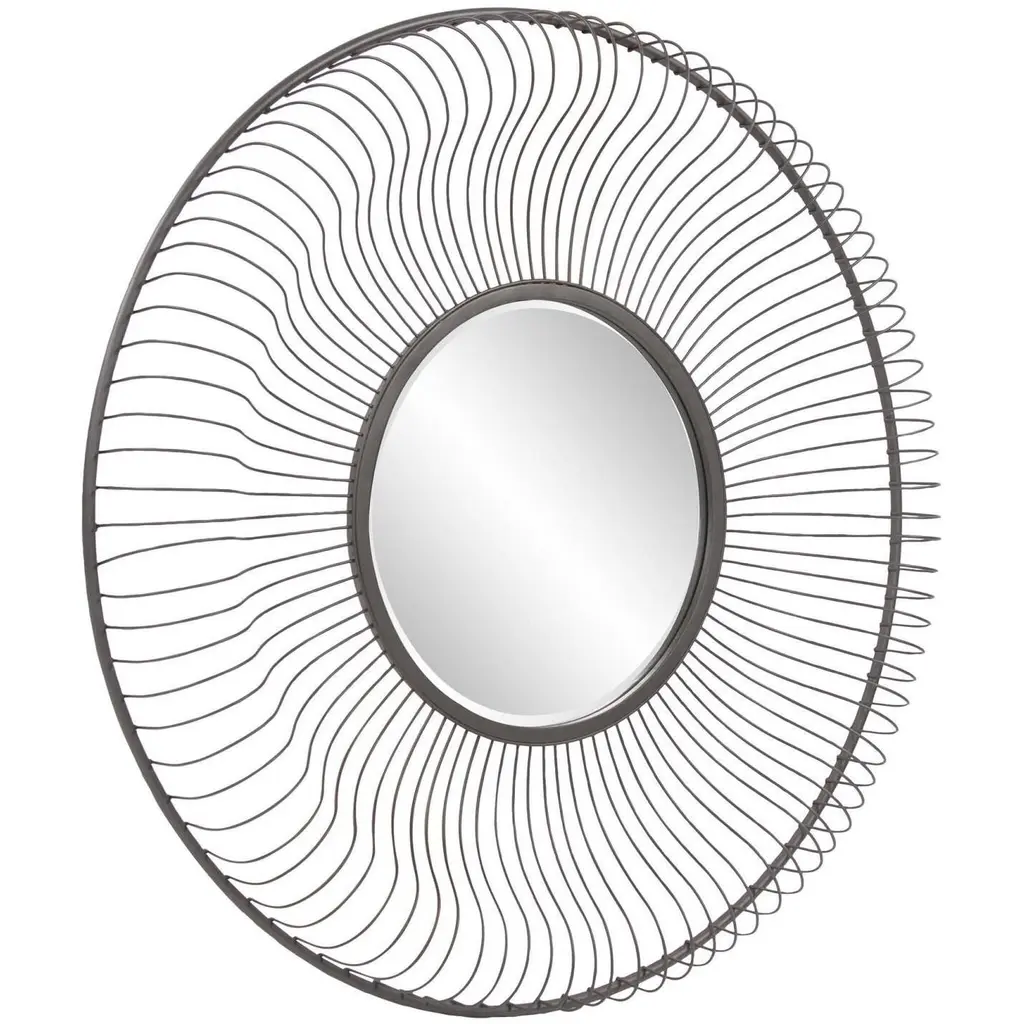 A beautiful, ribbon-like frame of thin iron is the spotlight in this stunning small zinc mirror. The three-dimensional frame creates a centerpiece perfect for any modern living room.