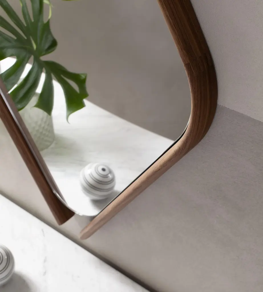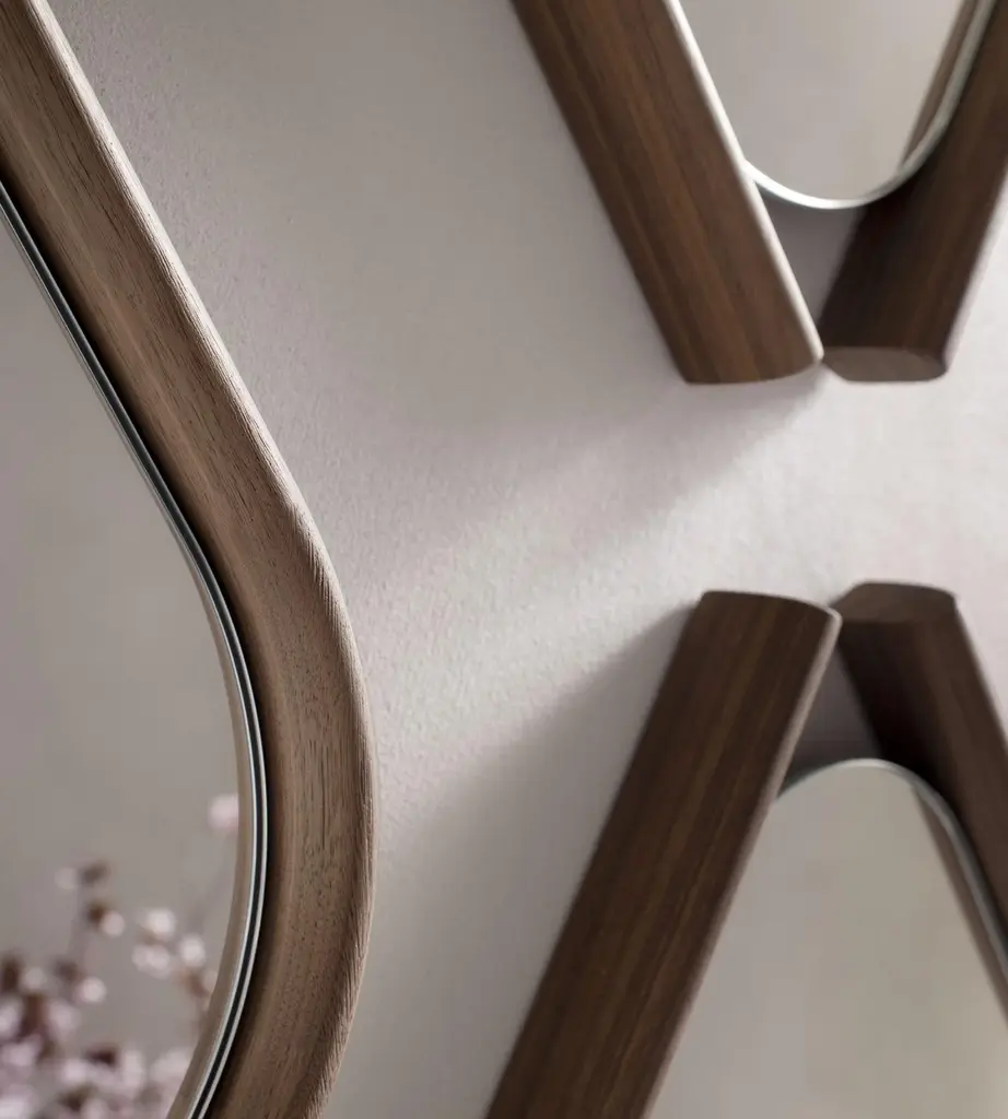 Small Walnut Wood Eye Mirrors by Morica Design Dimensions: D 4 x W 73 x H 48 cm Materials: Mirror, Canaletto walnut.