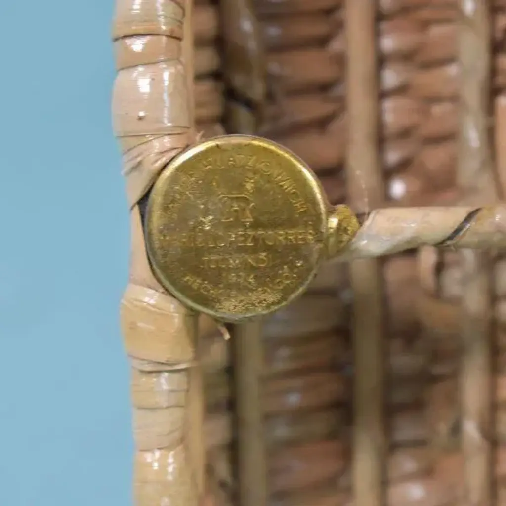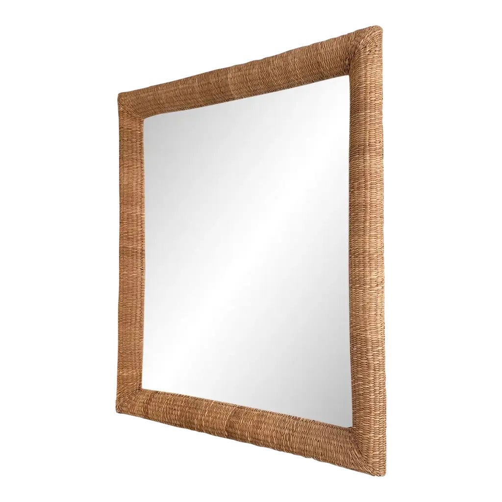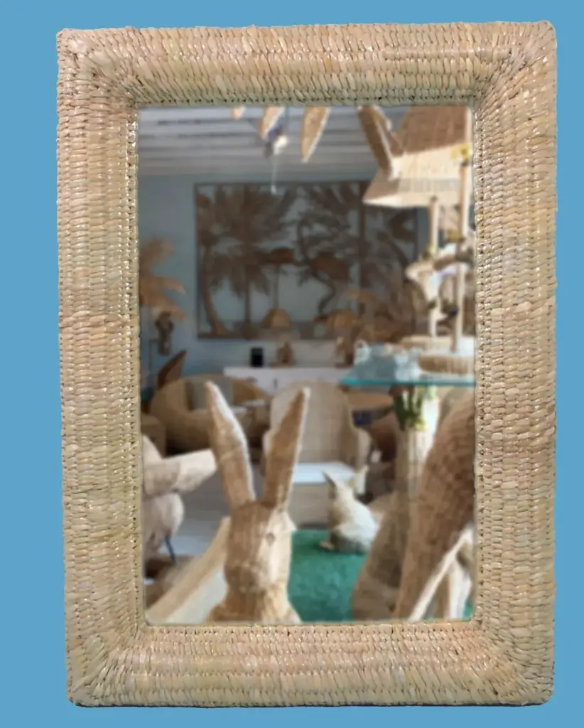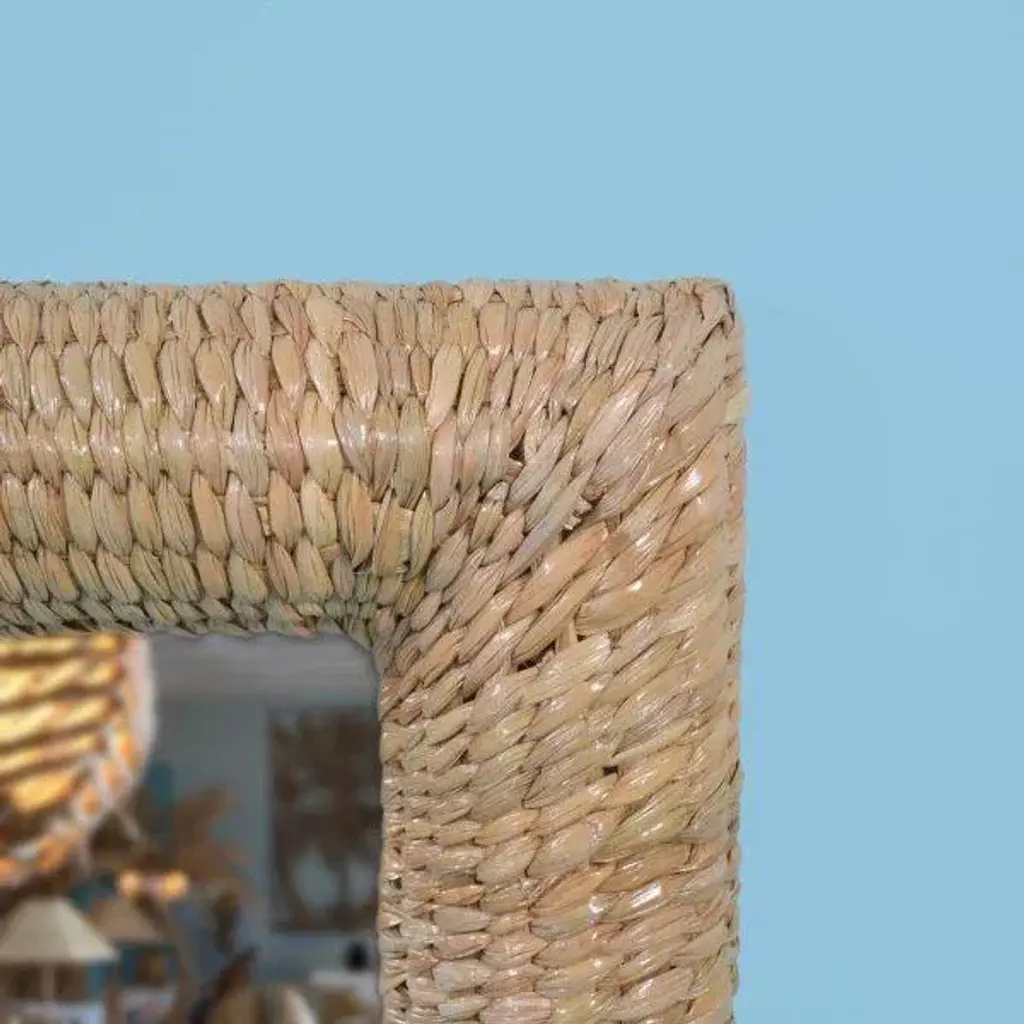 Small Wrapped Mirror By Mario Lopez Torres There are some imperfections to the hand-made woven rattan. Signed Mario Lopez Torres Est. 1974. (see photos)