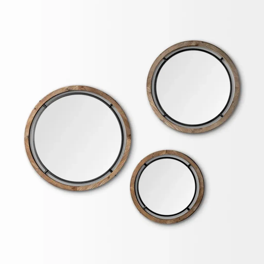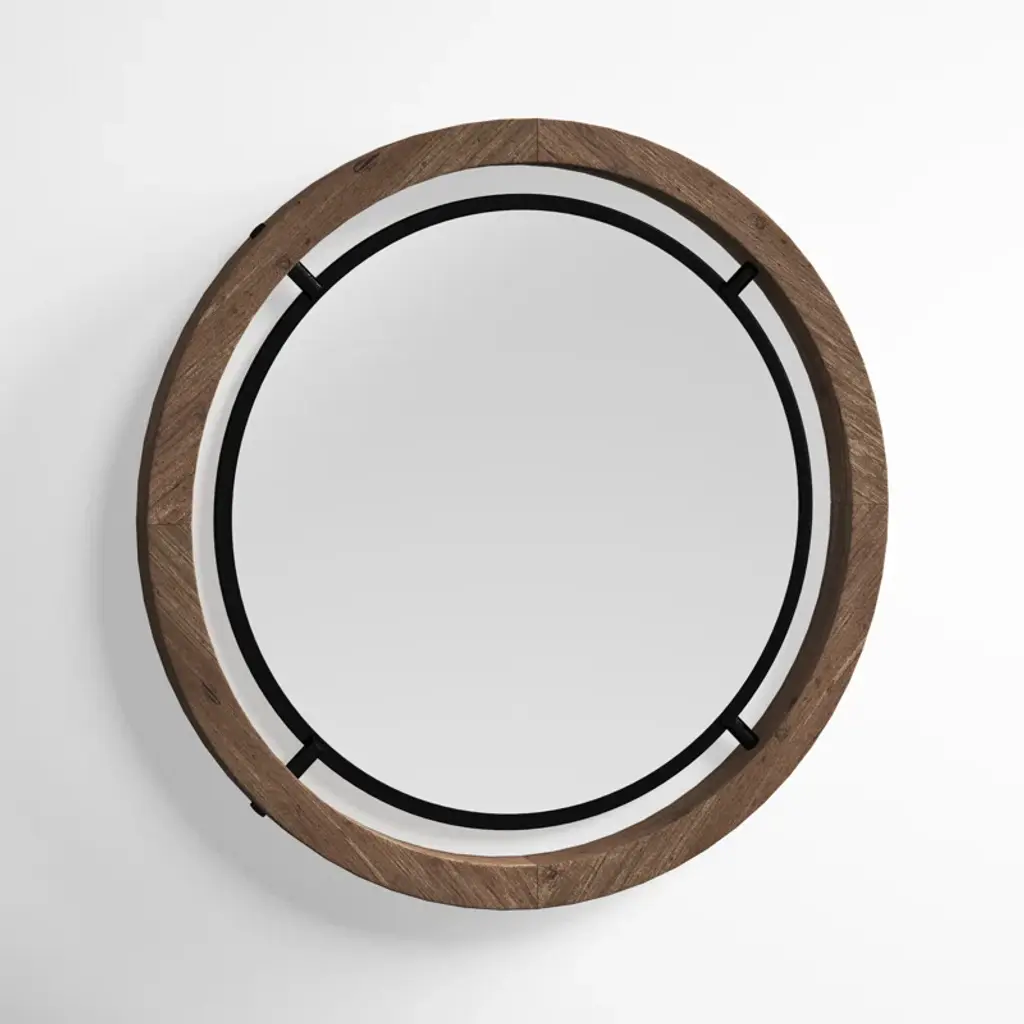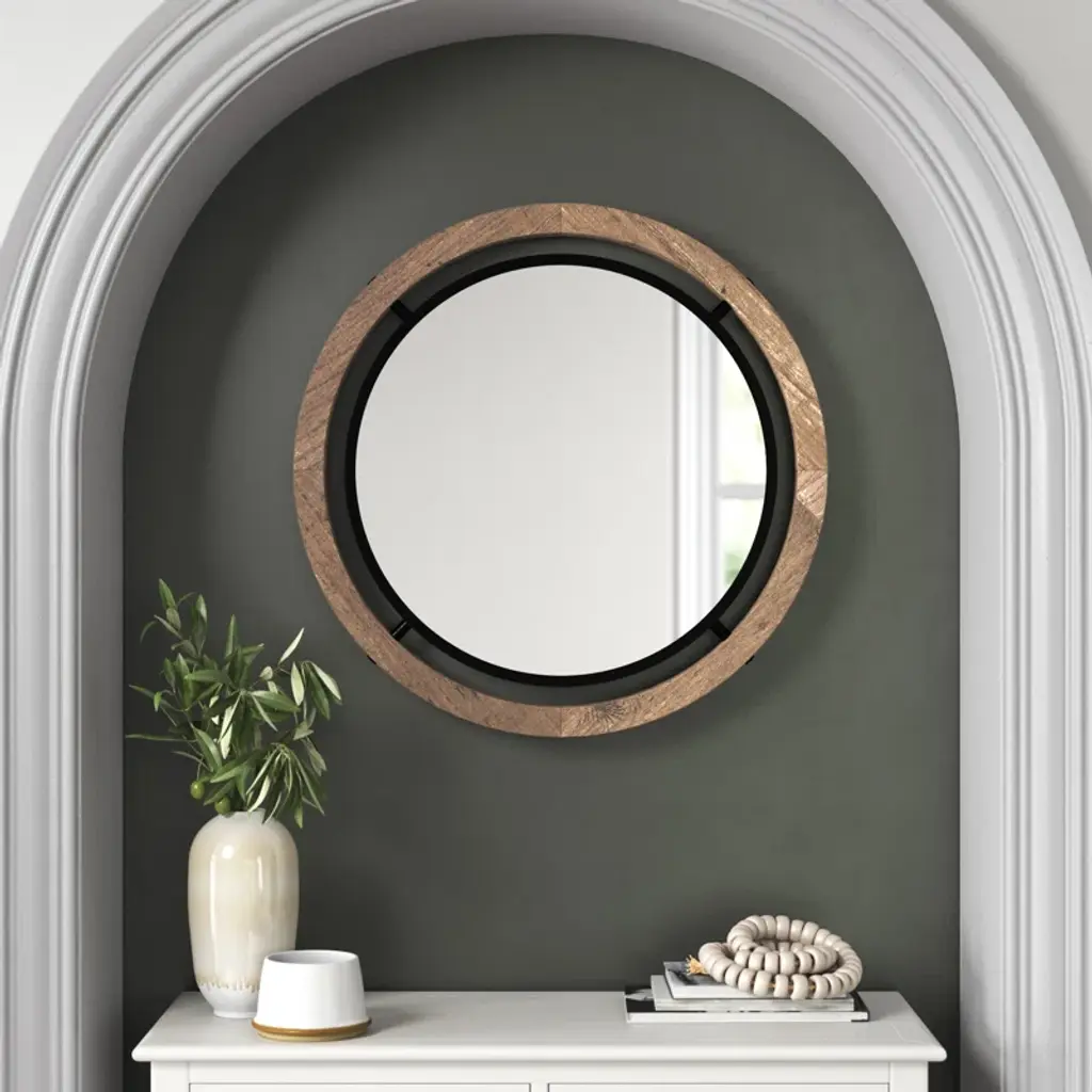 This wall-mounted accent mirror is an easy way to brighten up any space. The frame is made from wood and metal with a slightly offset oval shape that adds a distinguished touch to any room. We love the versatility of the brown and black finish, which is easy to pair with your existing decor. Ideal for making your space appear larger by letting light bounce around, this mirror is a great choice for mimicking windows in windowless rooms. Although it looks great by itself, we think it also works well when clustered with two matching pieces in three different sizes.
