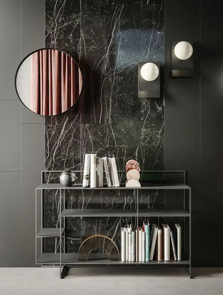 Snow is a collection of magnetic mirrors with painted metal frame. Available in three different sizes, they can be used individually or in free compositions according to tastes and needs. They can also be fixed to the wall and, in the intermediate size (Snow 02), available with LED backlighting to be used with electrified track.