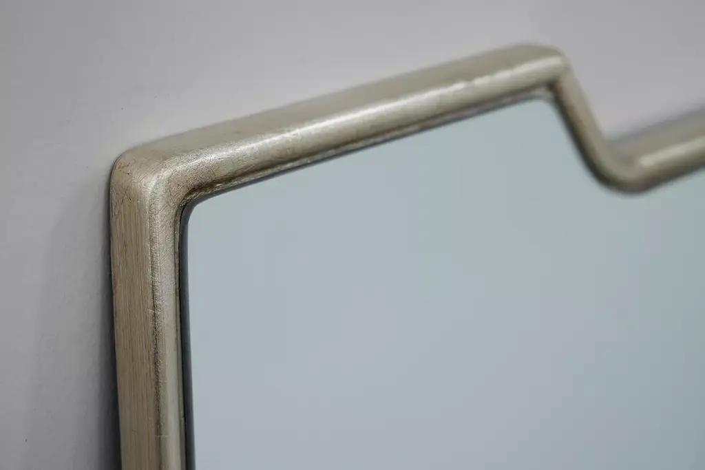 With its unique, angular shape, our Sojourn wall mirror creates a stunning accent to your living room or home office wall with its eye-catching silhouette. This wall mirror comes in either a handcrafted silver or gold finish and can hang vertically or horizontally. Please select your color before adding to cart.