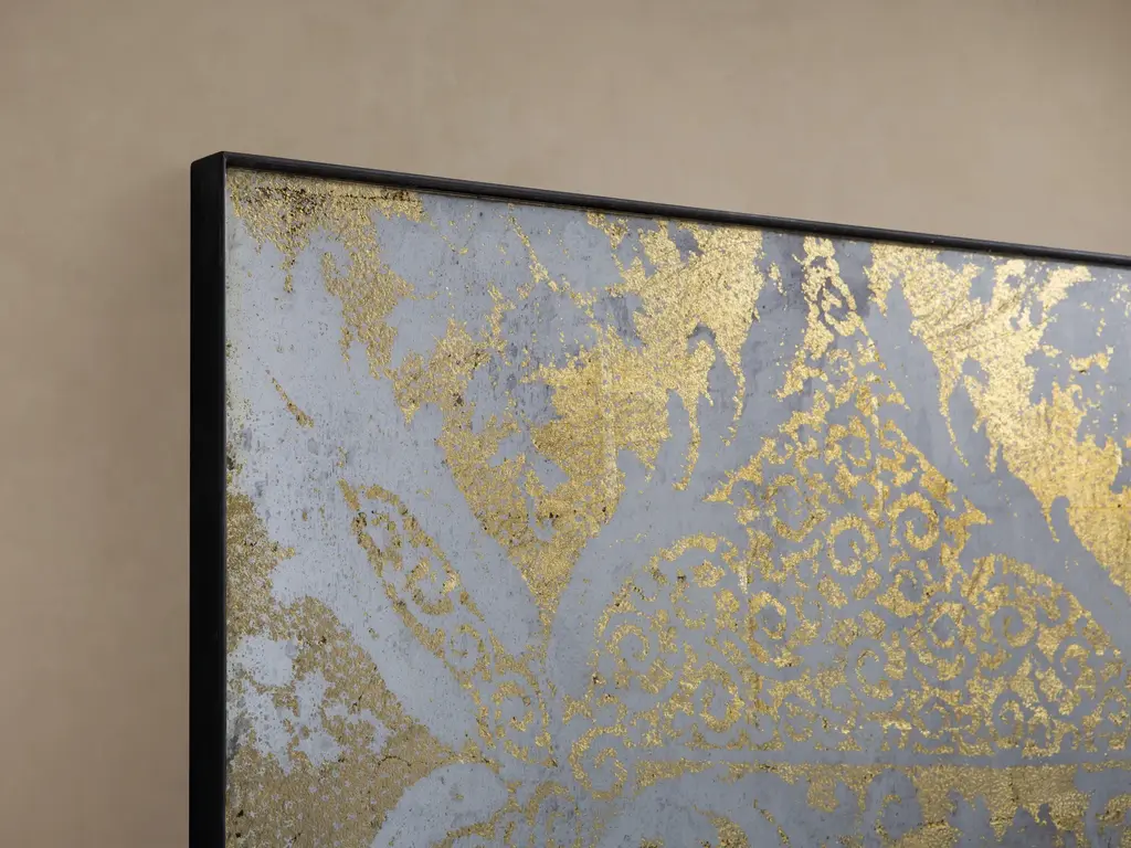 Designed by American artisans, our Solange mirror is marvelously decorated by hand with an intricate lace motif. Real Victorian lace is delicately applied to the mirror’s glass, adding depth and elegance to its stunning antiqued aesthetic.