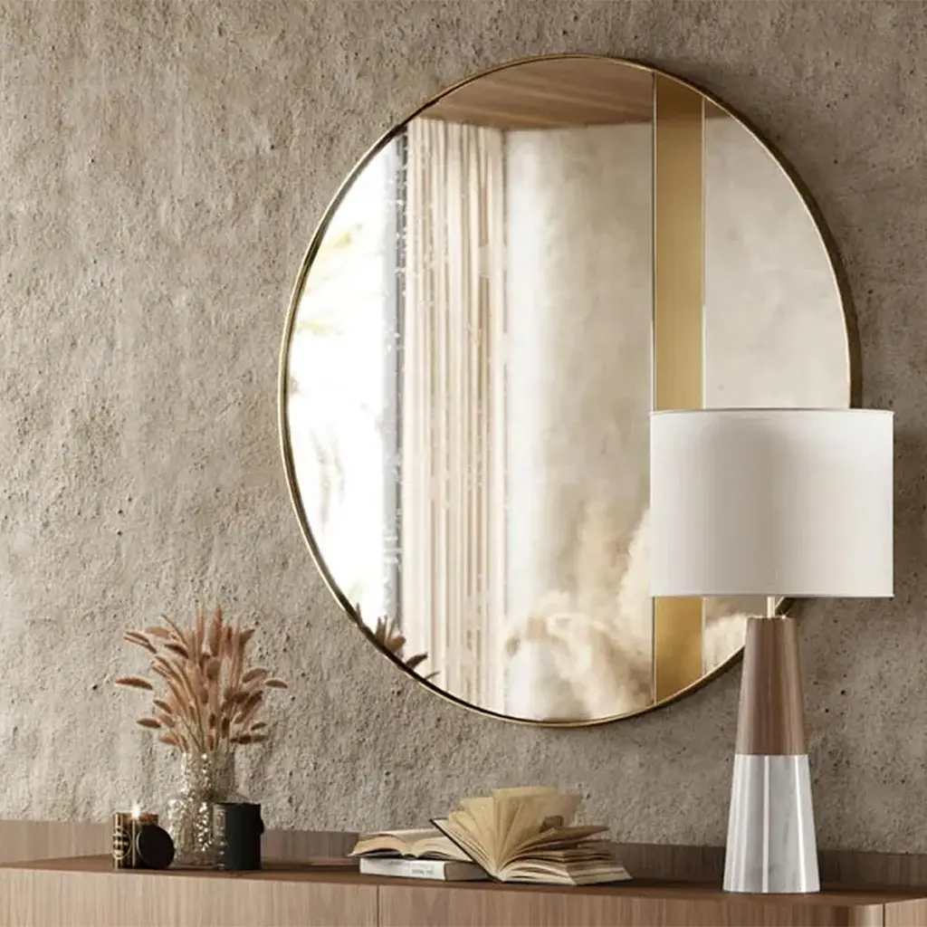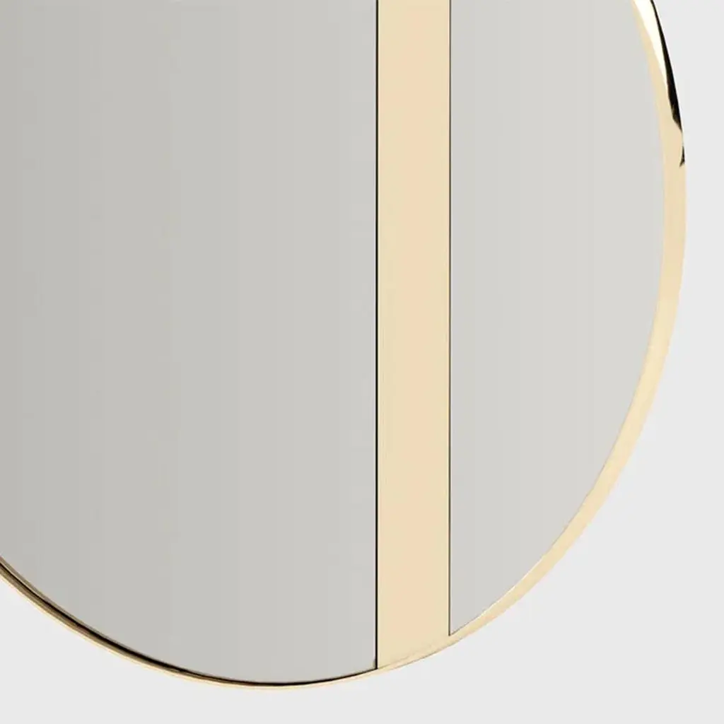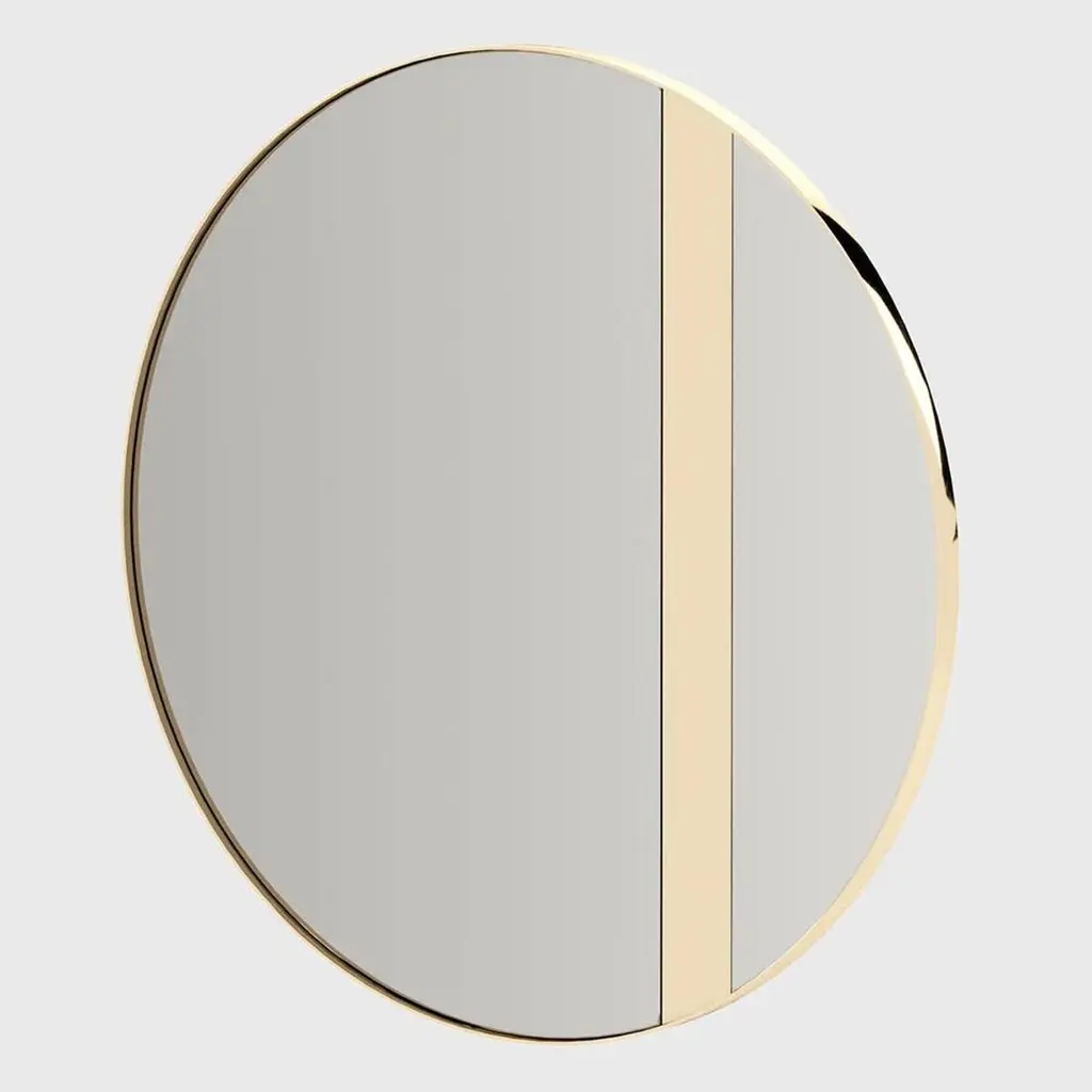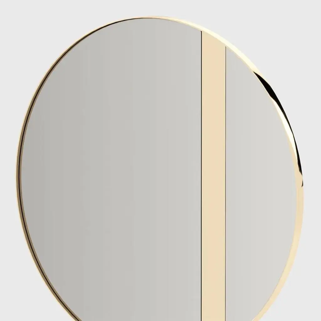 Mirror solar round with flat mirror inclear glass and with polished stainlesssteel frame and rod in gold finish. Framethickness : 40 mm.Also available in other steel finishes, onrequest.