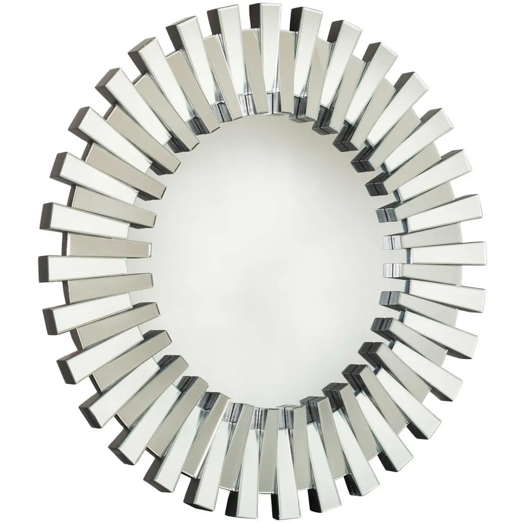 Draw attention to your walls with the Solaris Mirror. Featuring a ring of intertwined reflective pieces around a large flat mirror, this piece doubles in both functionality and as modern art. Accent a living room wall, entryway, or add over a bathroom sink to show off clever interior design skills. Available for local delivery only.