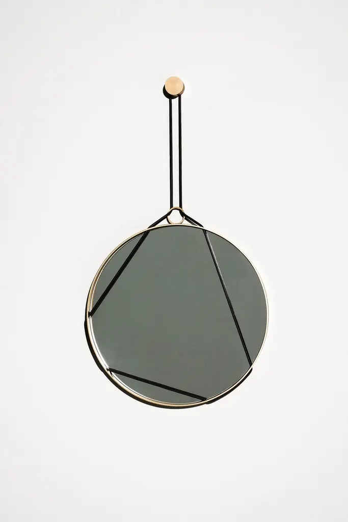 Designer: Giorgio BonaguroThe mirror is an object filled with meaning, an object, and, at the same time, a reflection: just like a jewel which is both an ornament and the reflection of a personality. Inspired by this similarity, Giorgio Bonaguro designed the Soleil mirror like a jewel for the wall, considering details like wearability and how it hangs. Like a pendant, the mirror is suspended by an elegant leather cord, typical of luxury leather goods, woven through the gold frame to create an interplay of reflections and shadows on the mirrored surface. A tastefully intricate object for those who adore sophisticated details.Frame: Metal frame T25 matte Champagne Gold, with dark brown leather cord.Mirror with wooden bottom.