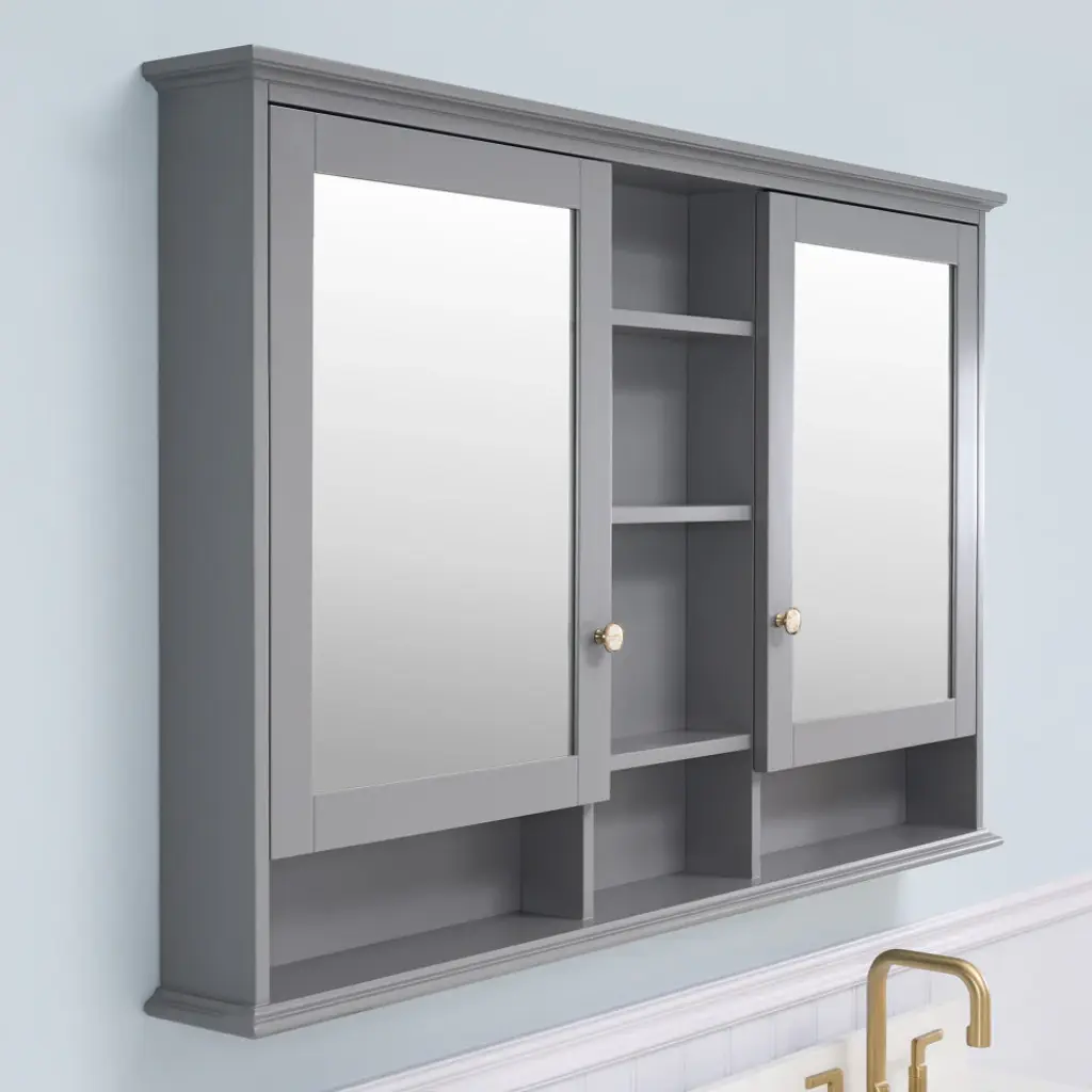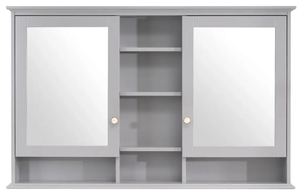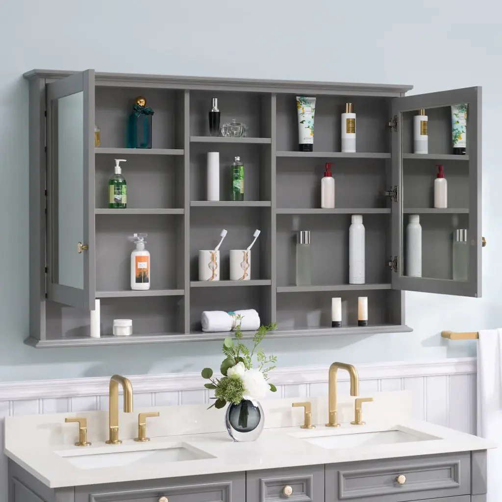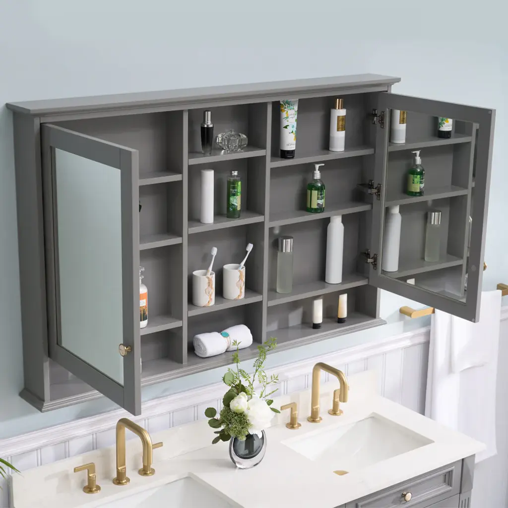 Solid Wood Bathroom Medicine Cabinet With Silver Coated Mirror, Titanium Grey, 55"x35"