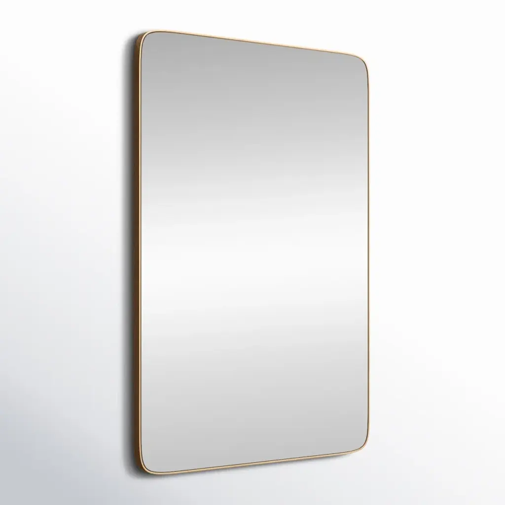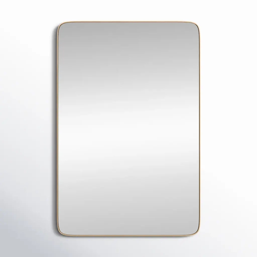 Edge + clarity. A slim metal frame outlines the soft rectangle, blending sharp lines with rounded edges for a clean, modern feel. The mirror’s surface is clear and distortion-free, and its reflective design makes small rooms look even bigger. Its minimalist profile floats easily in any space—bathroom, entryway, or bedroom. We love that you can mount it vertically or horizontally to fit your layout. Plus, it comes in your choice of matte black, silver, or muted gold for a finish that complements your style.