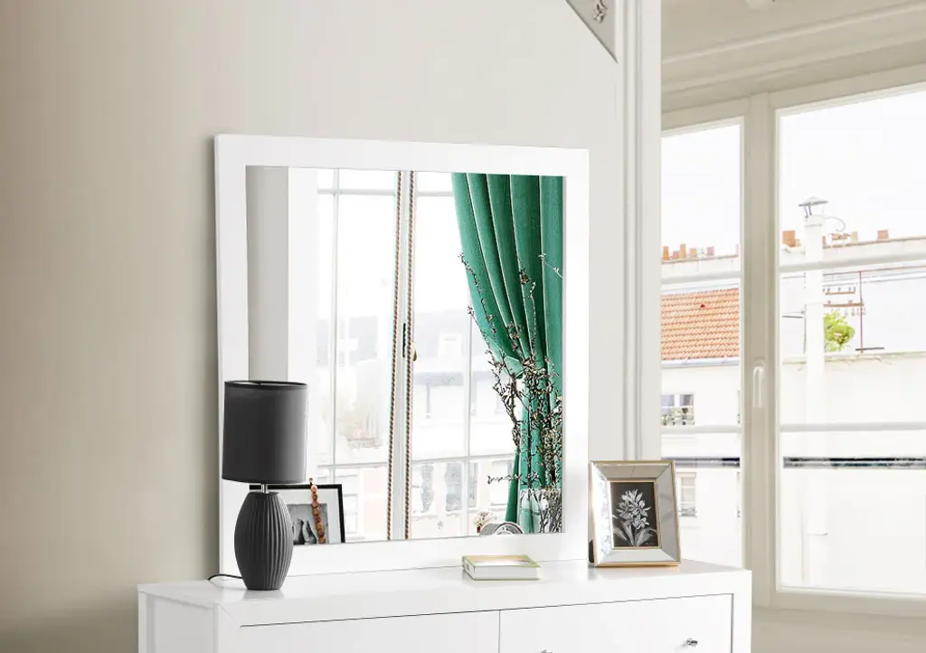 Wood Veneers /Resin Frames and Low Distortion Glass are Featured. Mirror Supports not includedDRESSER IS NOT INCLUDED
