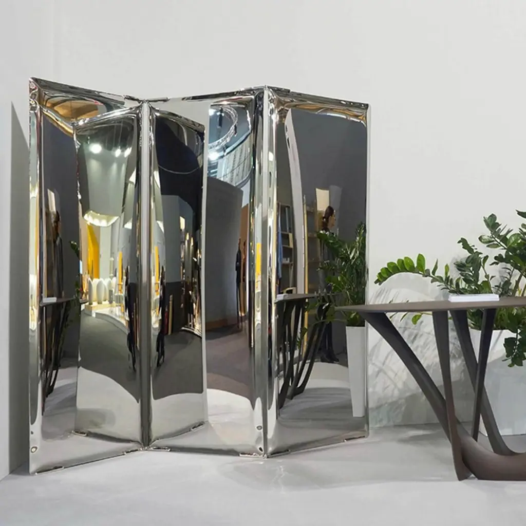 Sonar gradient wall mirror, Zieta (7 pcs)Dimensions: D 10cm x W 215cm x H 182m.Material: stainless steel.About the Gradient collection: The Gradient collection combines an exceptional depth and unparalleled reflections of the colorized surfaces. Soft transitions between colors provide the viewers intensive visual experiences. A change of point of view leads to a change in color perception.About Zieta: Zietas main goal is to deliver uniqueness and customization in design and constructions while keeping the production, transport and warehousing innovatively efficient.This is how they imagine the future world: Light, durable structures of customized applications produced on demand out of one-of-a-kind parts, yet efficiently.They use computer controlled production process. Customized pattern, customized form, customized function, one-of-a-kind product and outstanding precision are what they deliver.You will find all of this philosophy reflected in the products. They research, they discover new possibilities, they play with forms and they deliver a beautiful, innovative, surprising outcome to people who love design and who care about the design development.They believe their work is a valuable contribution to the world of design not only by the unique beauty of the forms but most of all by opening ultra-innovative opportunities of forming and new paths for the world of future.