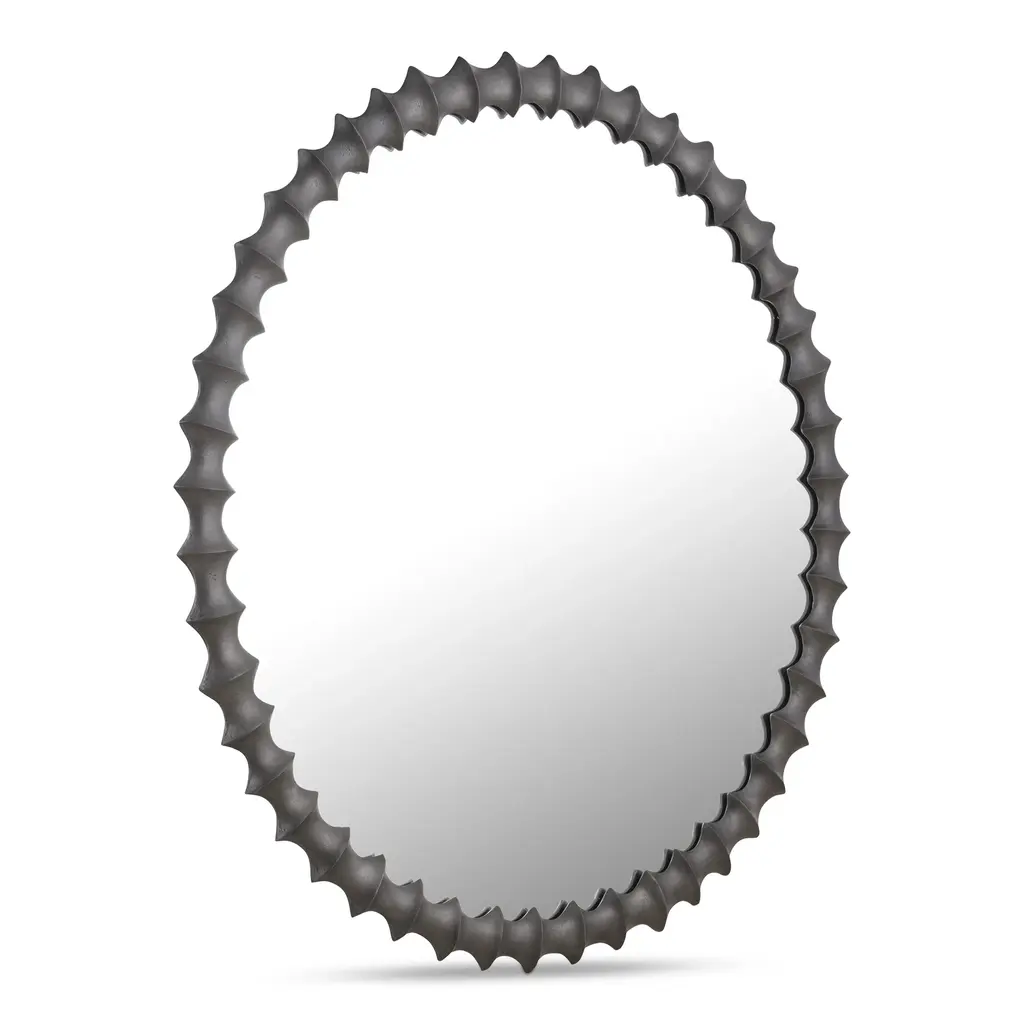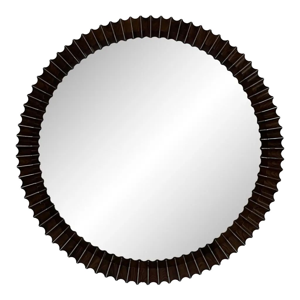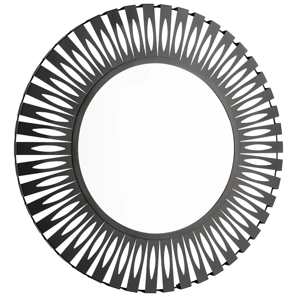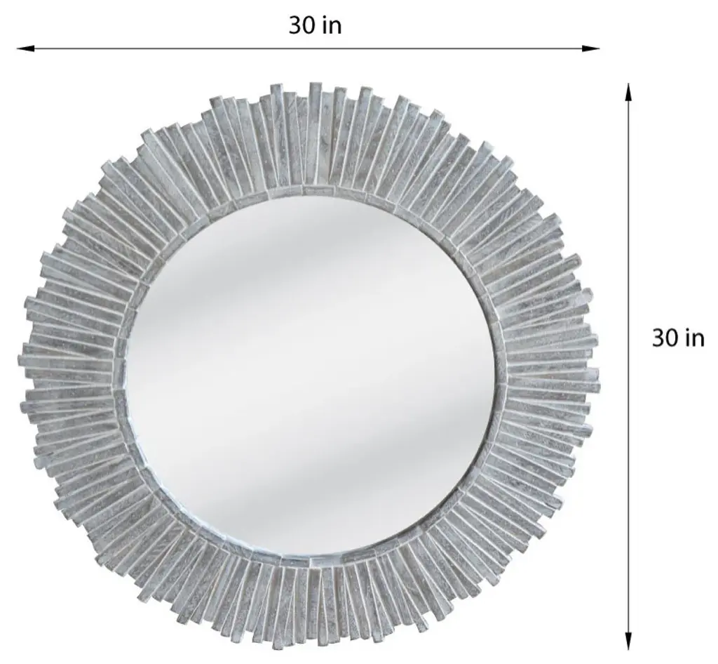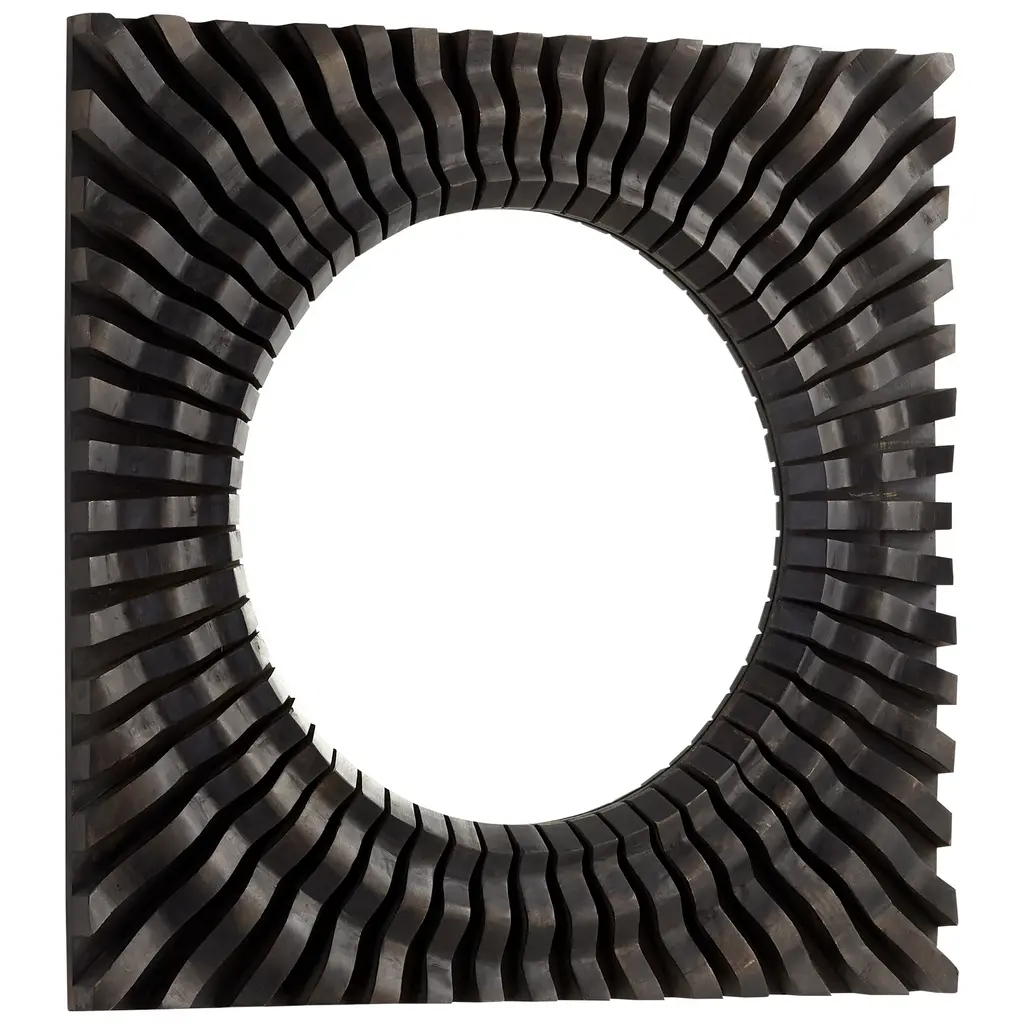 Decorate your wall with the Sonista Mirror by Cyan Design. This mirror is composed of durable wood, which boasts intricate, ribbed patterning throughout its surface. Your mirror features a flat front and secures to your wall with ease. This mirror’s square frame beautifully contrasts a circular center, bringing a contemporary look to your hallway or family room. Glass is properly situated within the mirror’s frame to reflect images with the utmost clarity.