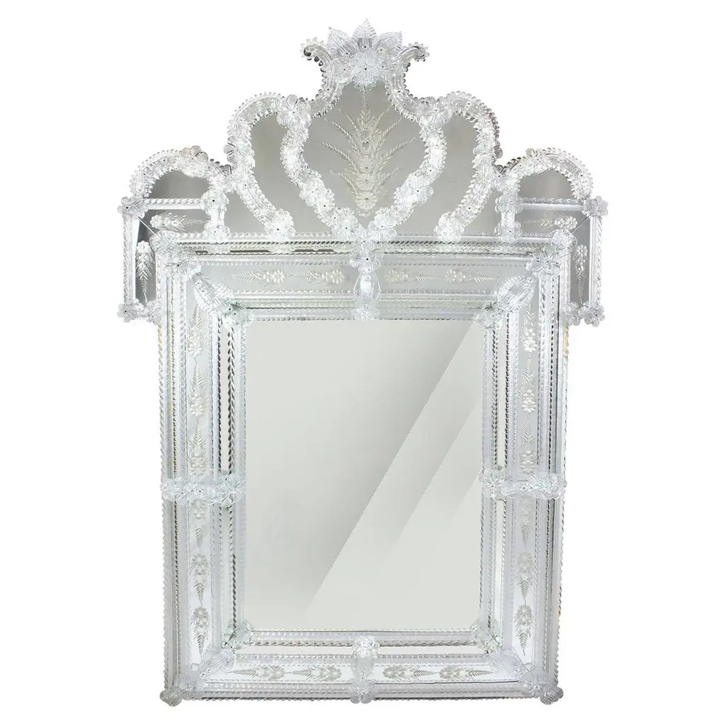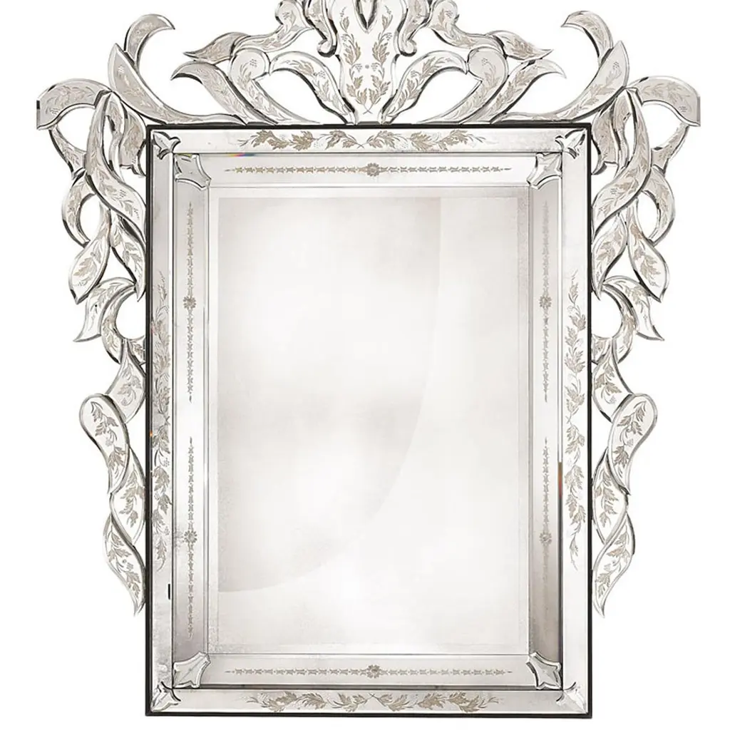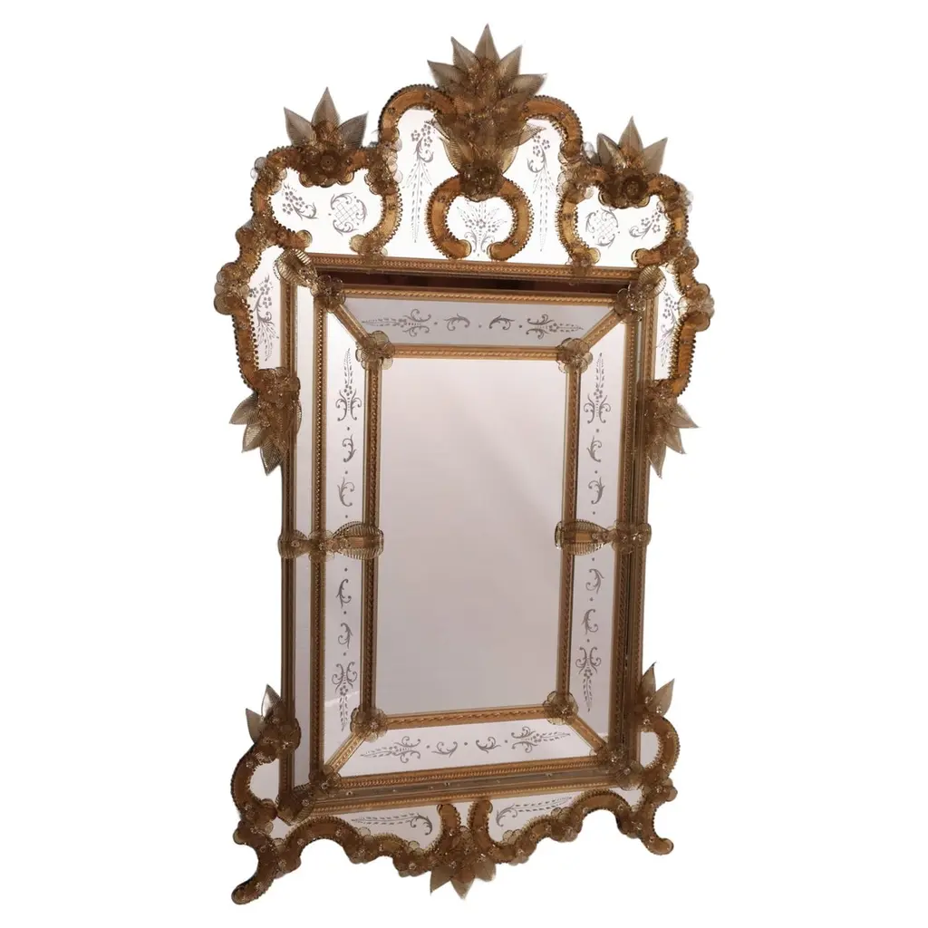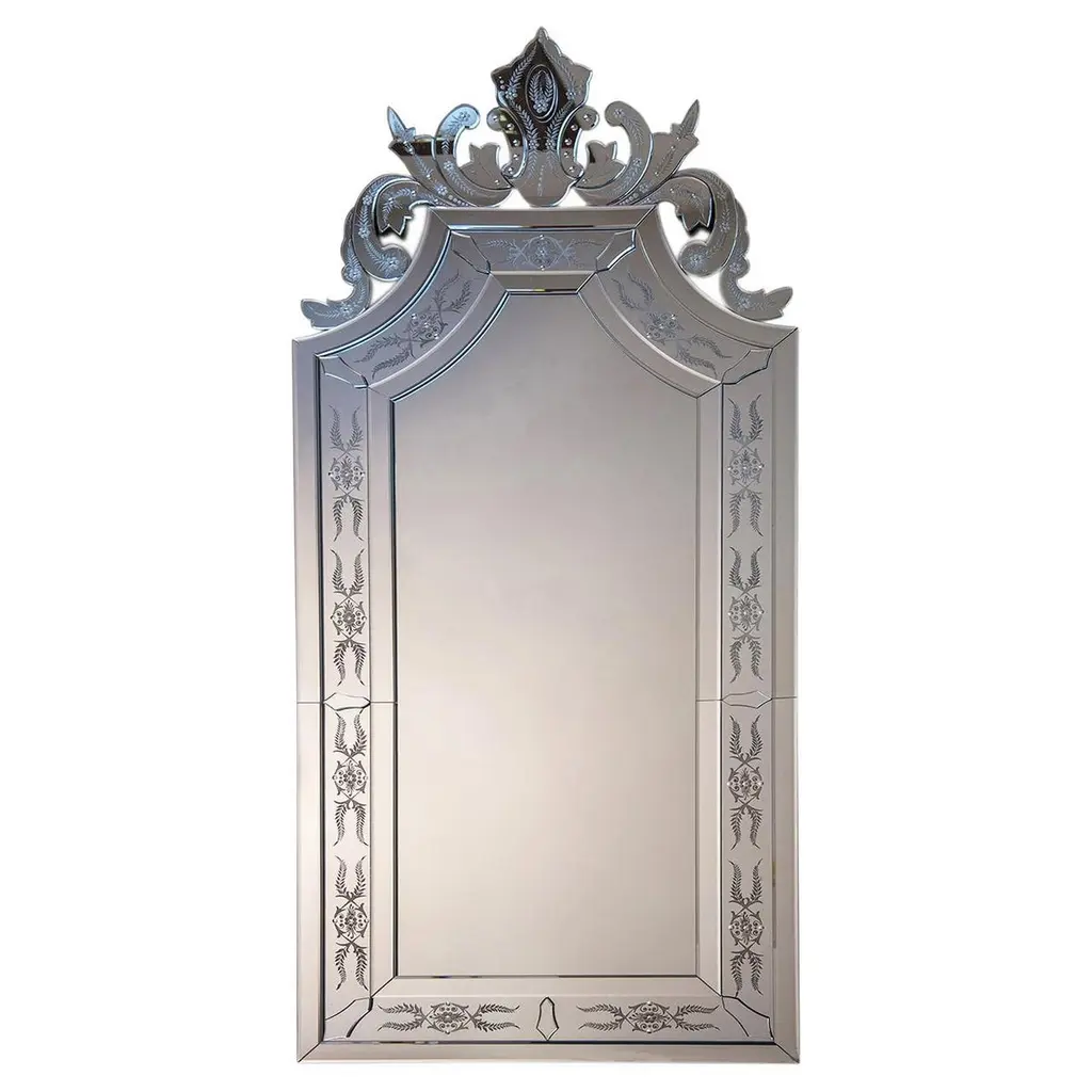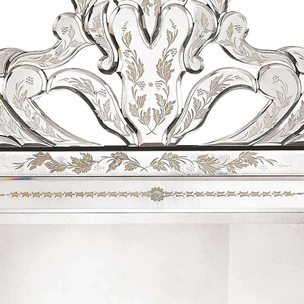 Mirror Soprano with structure in solid woodand with handmade and engraved and bevelled antique mirrored glass. In the style of Louis XIV. Exceptional piece.