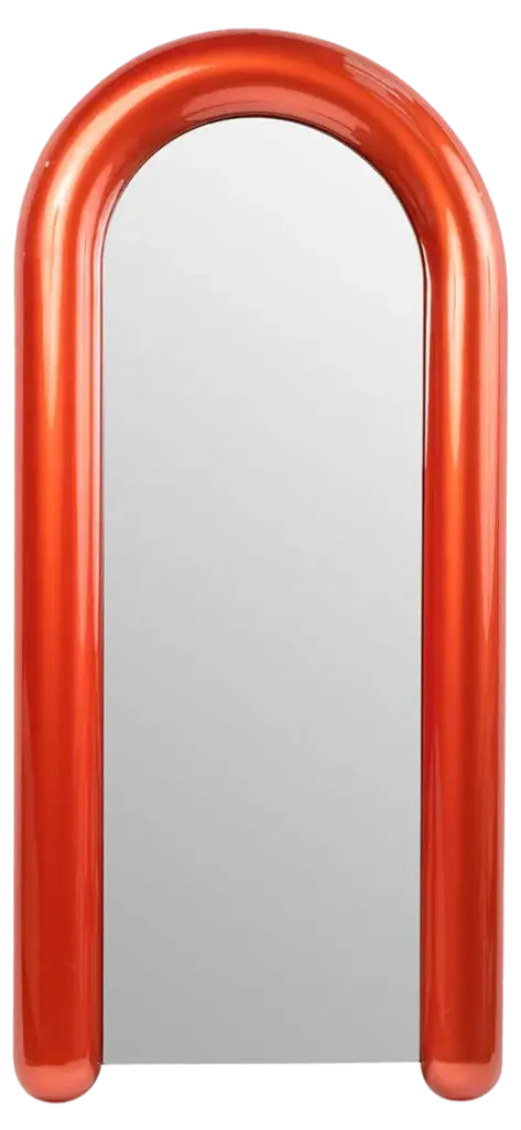 Soufflé mirror by Luca NichettoMaterials: structure: Menthol NCS 2020 G40Y/Coral NCS 2570 Y70R/Prune NCS 8010 R50B Liquid-painted metal, mirrorDimensions: W 91.5 x D 16x H 200.5 cmCustomization available.With a playful design and an inflated appearance, Soufflé mirror borrows the French expression for ‘blown’ to name itself, emphasising its more evident and distinctive feature.A frame by the puffy and light appearance of a balloon hides inside a wooden structure and contains the arch-shaped surface of the full-length mirror. The tubular fixture, while guaranteeing a variable support point, both on the wall and on the ground, it allows the mirror to assume the ideal position, to adapt accordingly to the environment. Its finishing amplifies the reflectivity, making Soufflé mirror to stand as a functional yetdecorative object.Born in Venice in 1976, he studied there at the IUAV, the Venice University Institute of Architecture, from which he graduated in Industrial Design. In 1999, he started his career designing his first projects for Salviati using Murano glass.He went on to collaborate with Foscarini as a designer and consultant. In 2006, he establishedhis own studio in Venice, which specialised in Industrial Design and design consulting. Five yearslater, in 2011, Nichetto opened a second studio in Stockholm, Sweden, where he now works andresides.Throughout his career, Nichetto has served as Art Director for a number of international design brands.